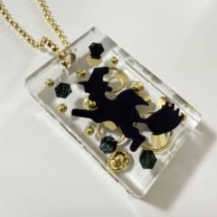 魔女とほうき チャーム キーホルダー ハロウィン ゴールド×ブラック レジン