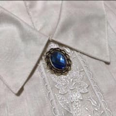 レトロな青の宝石風ブローチ