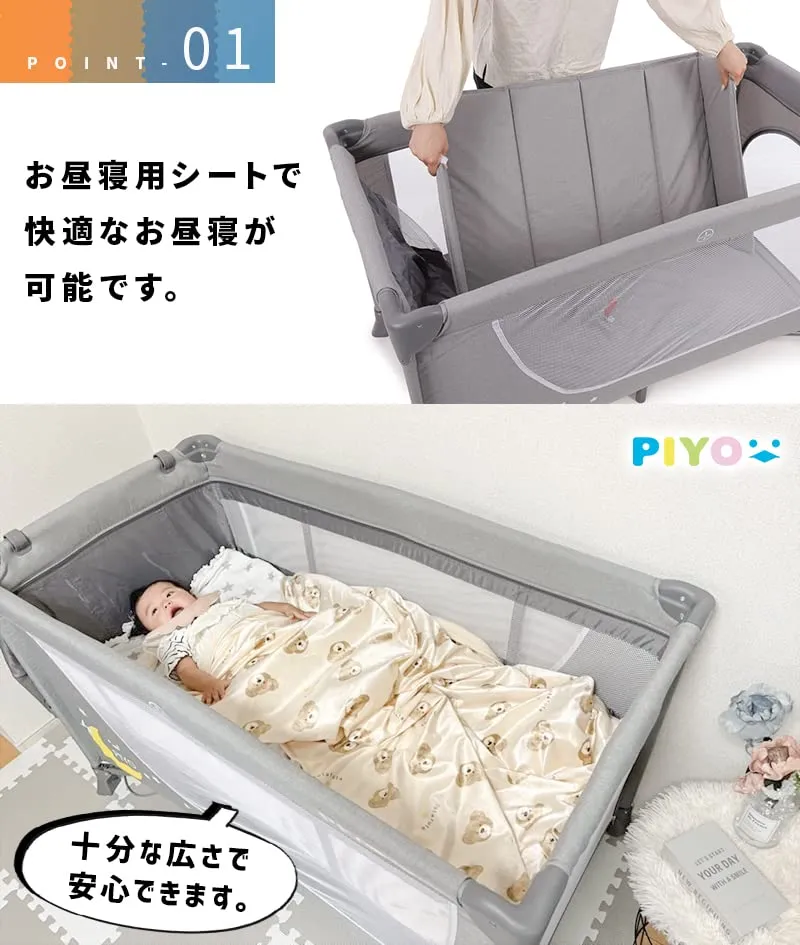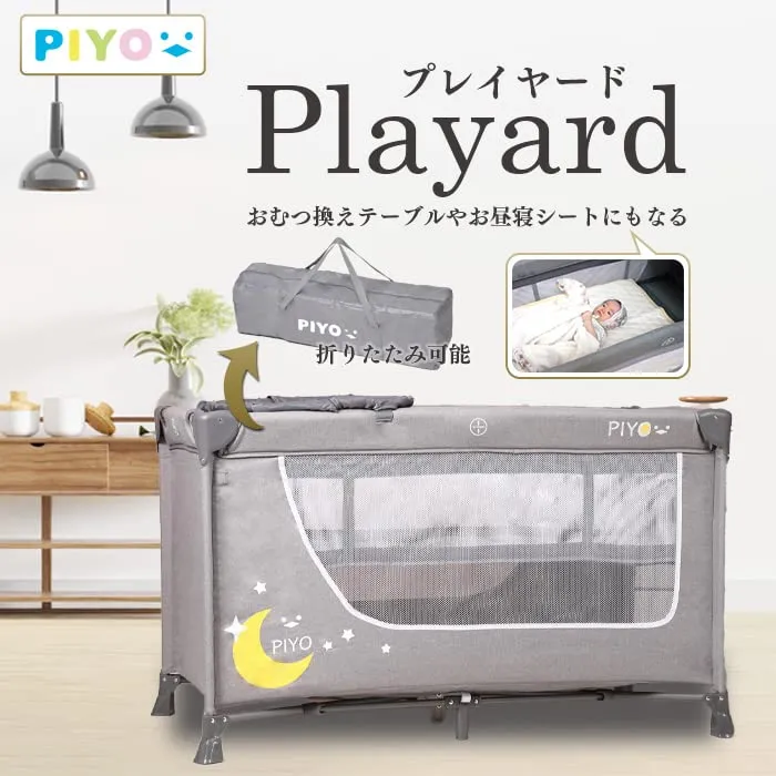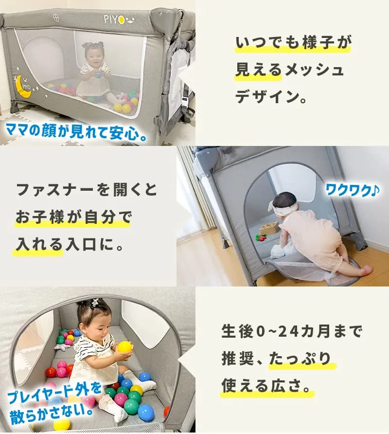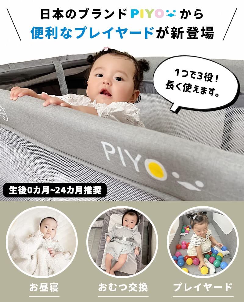 新品 ピヨ(PIYO)プレイヤード 折りたたみ 丈夫で大きな125cm 丈夫 折畳み ベビーサークル プレイサークル おむつ替えテーブル付 キャスター付 キャリーバッグ付 たためる お昼寝マット 幅76cm高さ65cm 0ヶ月
