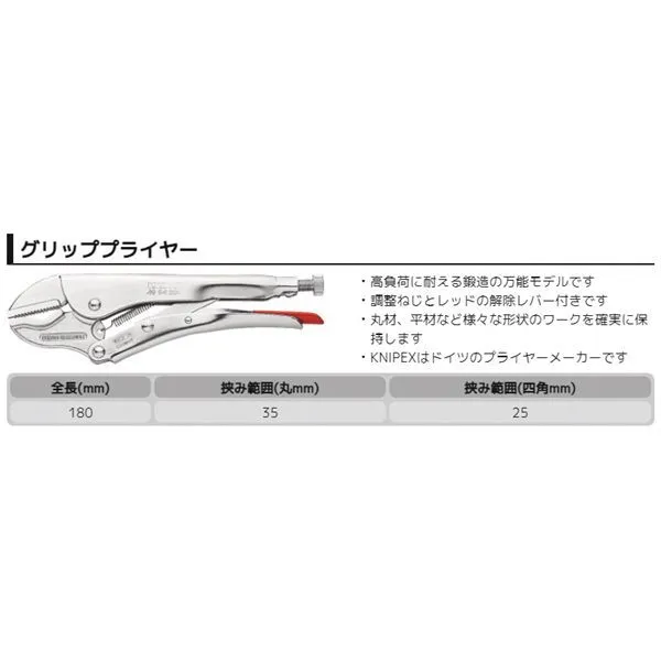 KNIPEX クニペックス 万能グリッププライヤー サイズ65×17×250mm パック入 4004-250SB