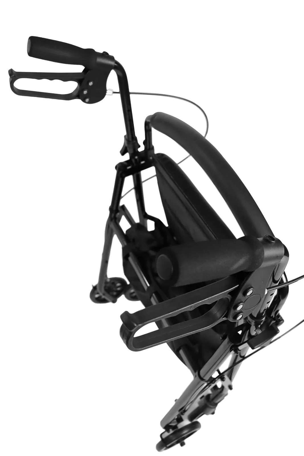 安全:ケーブルブレーキシステムとパーキングブレーキがあり、歩行器を完全にロックし、シートの使用時に動くことを防ぎます。