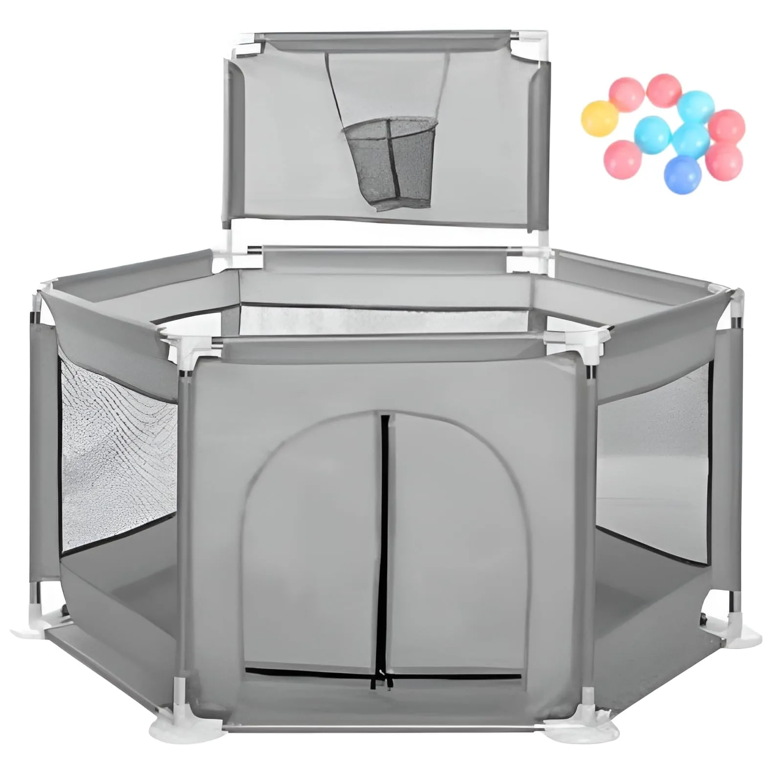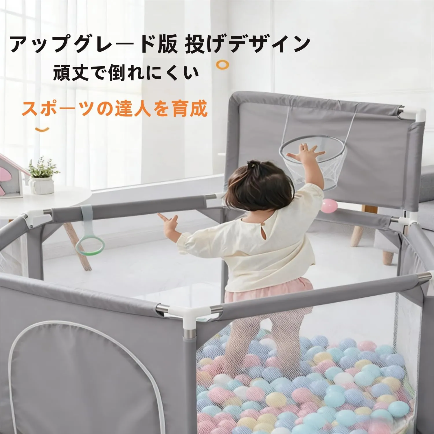 新品 ベビーサークル 【保育士監修】バスケットゴール付き ベビーサークル 大型 メッシュ囲い ドア付き 【日本語の取扱説明書が付属】 屋内用 屋外用 プレイヤード 海洋球10個付属 0歳 1歳 2歳 3歳 赤ちゃん 子供 キッズ ゲート 安全 安心 ジャンプ
