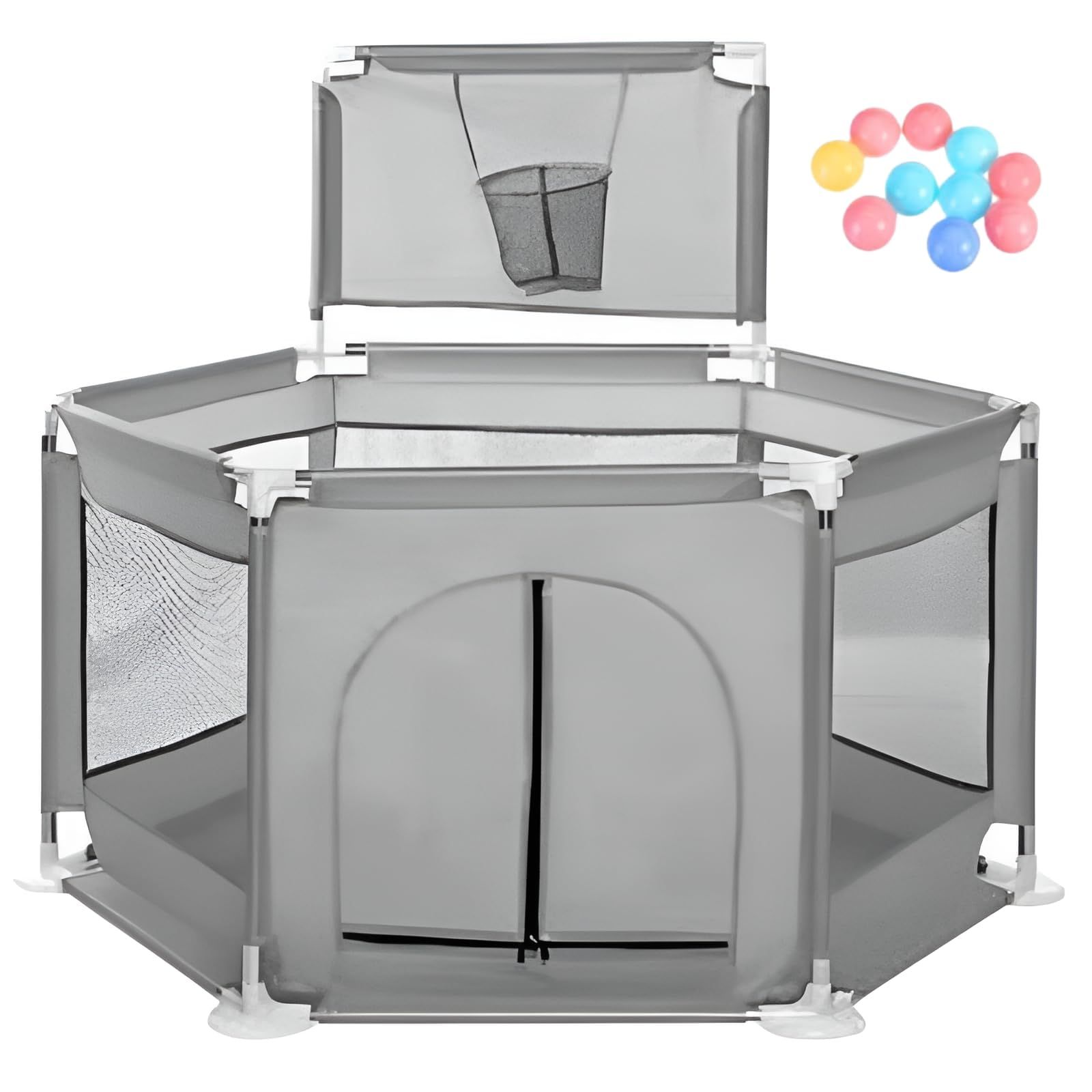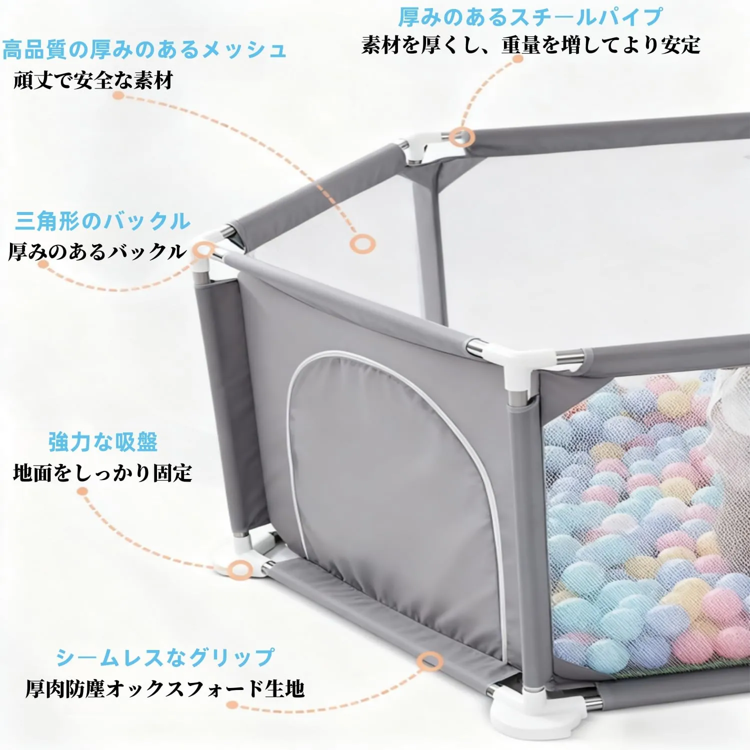 【日本語の取扱説明書が付属】 屋内用 屋外用 プレイヤード 海洋球10個付属 0歳 1歳 2歳 3歳 赤ちゃん 子供 キッズ ゲート 安全 安心 ジャンプ 運動 遊び 室内遊び すべり止め 収納 折りたたみ ママの安心設計 (グレー) 色: グレー