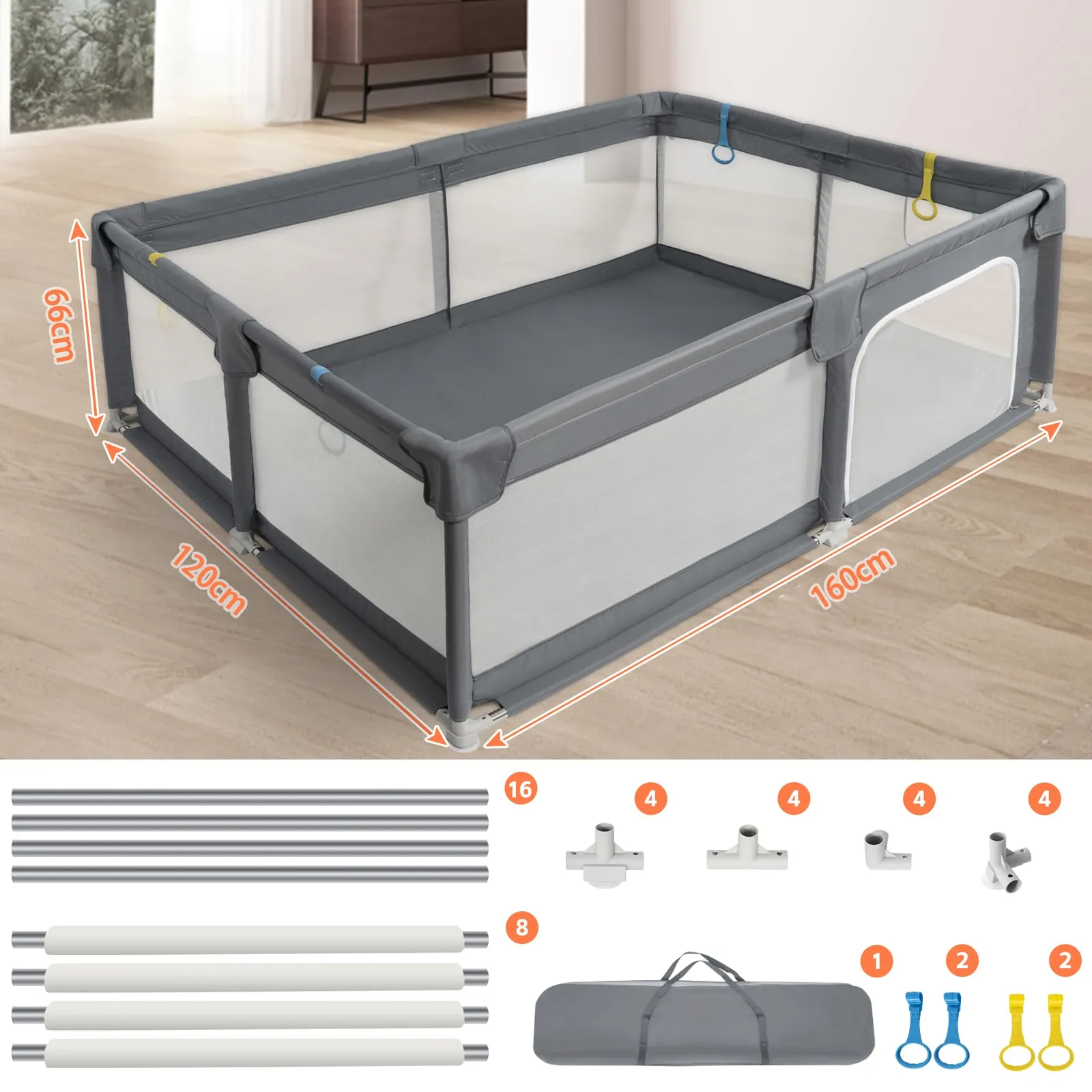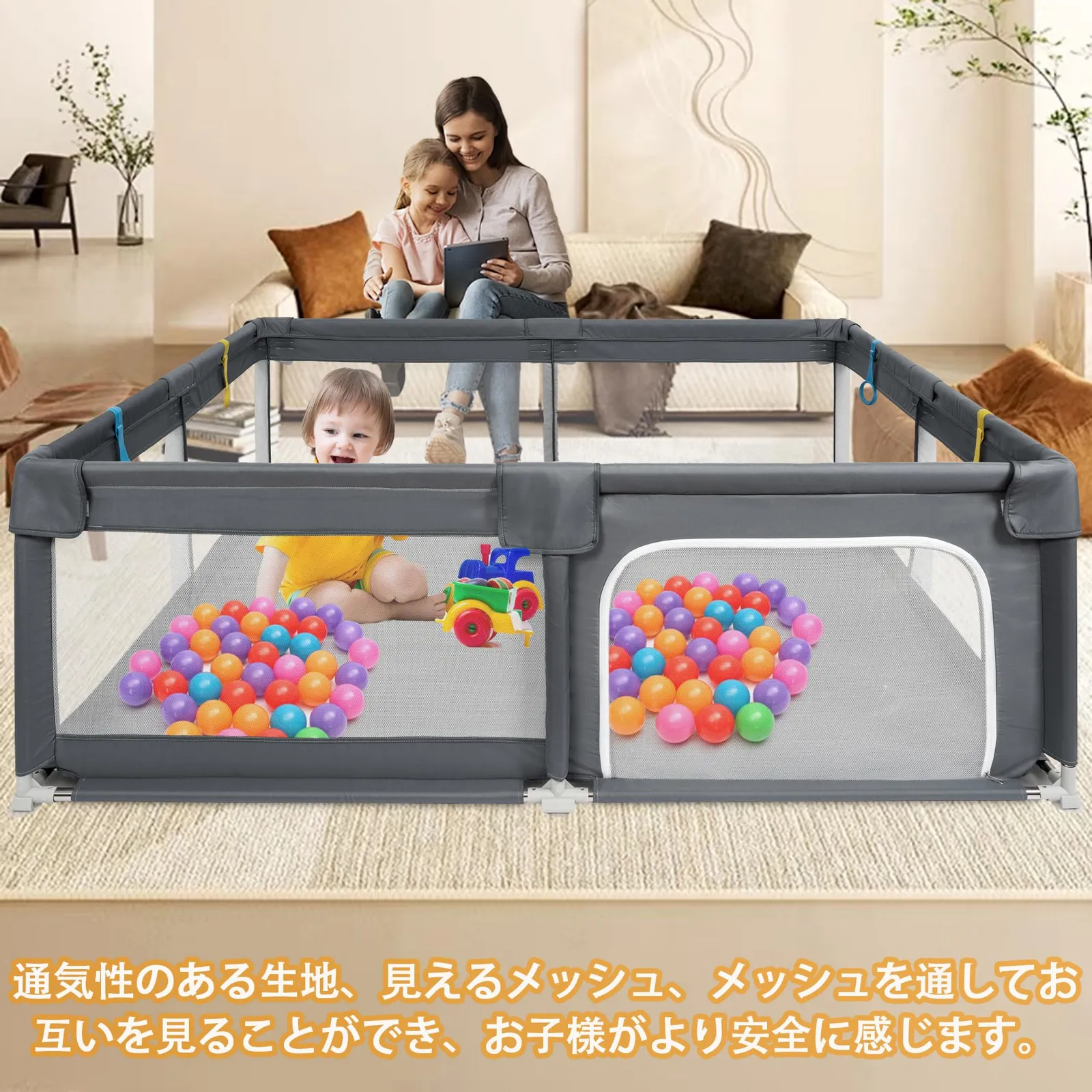 新品 BQKOZFIN ベビーサークル サークル 赤ちゃん (120x160x66cm)長方形 コンパクト 扉付き 大型 プレイヤード baby playpen 滑り止め吸盤 メッシュタイプ 洗濯可能 収納バッグ付き 室内外対応 子供 軽量 日本語の説明書付き