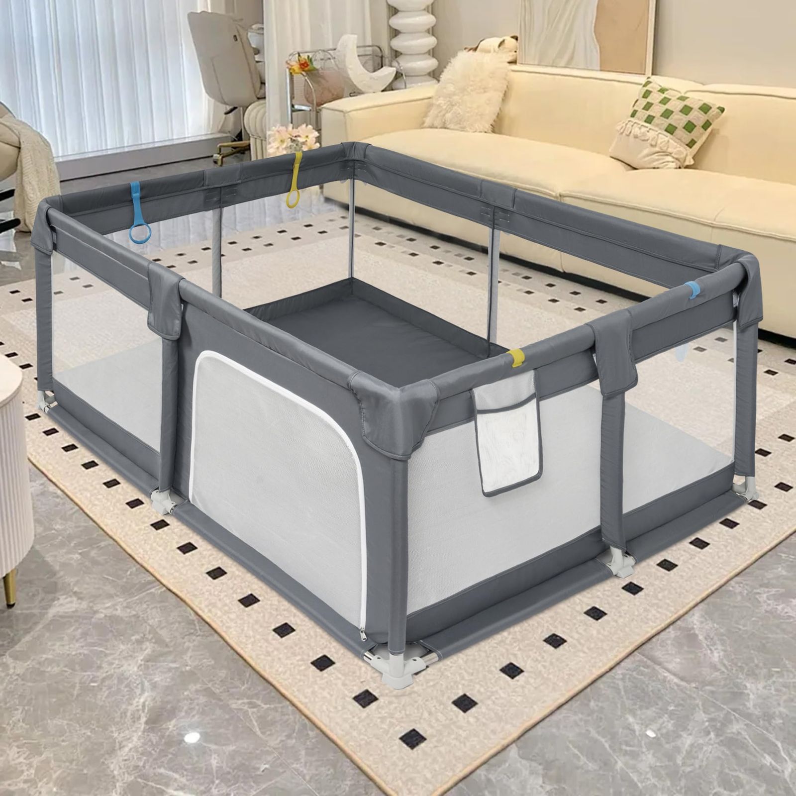 BQKOZFIN ベビーサークル サークル 赤ちゃん (120x160x66cm)長方形 コンパクト 扉付き 大型 プレイヤード baby playpen 滑り止め吸盤 メッシュタイプ 洗濯可能 収納バッグ付き 室内外対応 子供 軽量 日本語の説明書付き(ダークグレー)