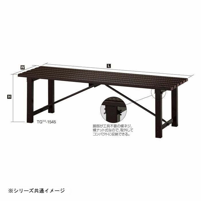 耐食性にすぐれ、軽量なので持ち運びもラクラク。脚部が工具不要の蝶ネジ、蝶ナット式なので、取外してコンパクトに収納できます。表面は美しいライン入り(側面キャップ付)。
