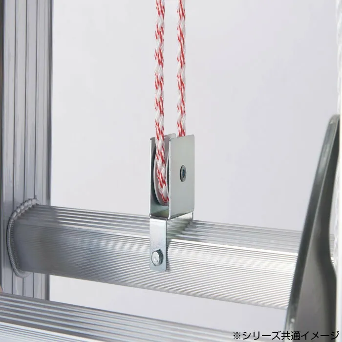 伸縮をスムーズにする専用ガイド。軽い力で伸縮できる専用滑車。滑り止め用端具はジンクロメッキ仕上げ。