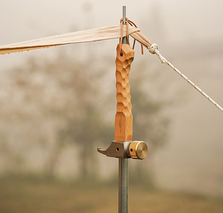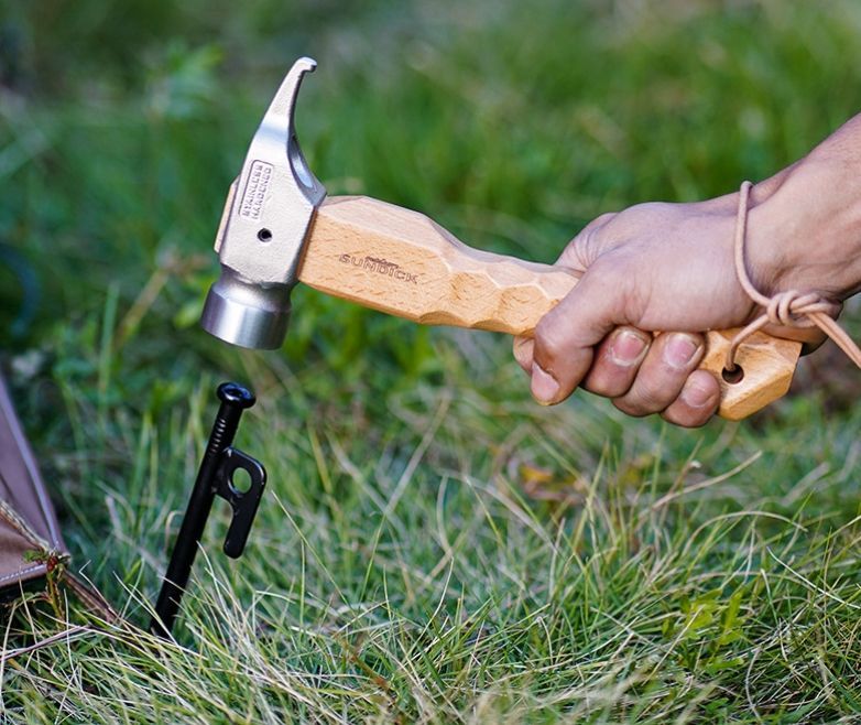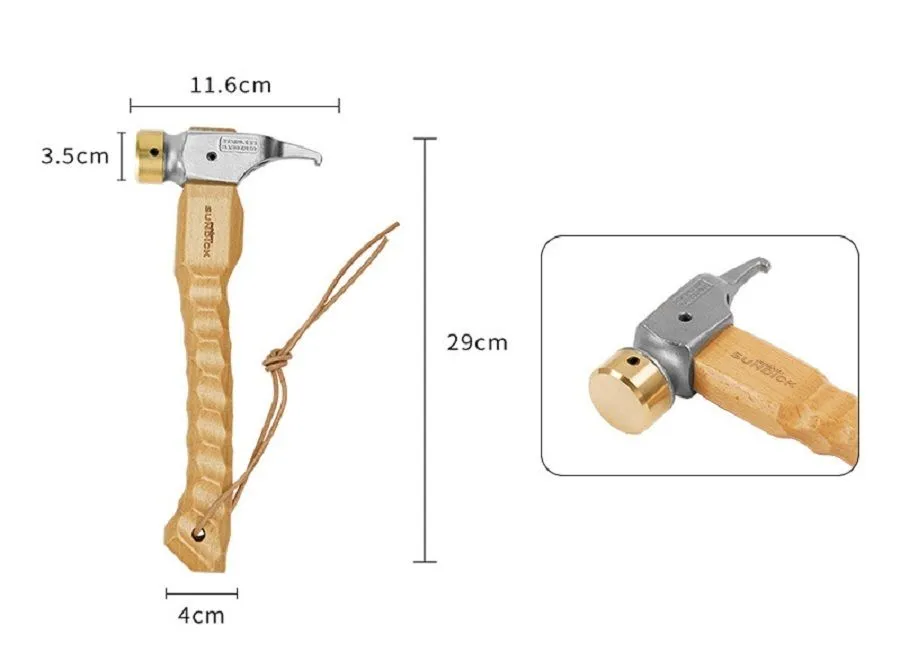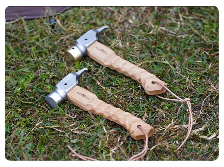 キャンプ用 高品質 名栗加工 ペグハンマー真鍮ヘッド 木柄 鉄製 アウトドア 野外登山 長さ29cm 540g