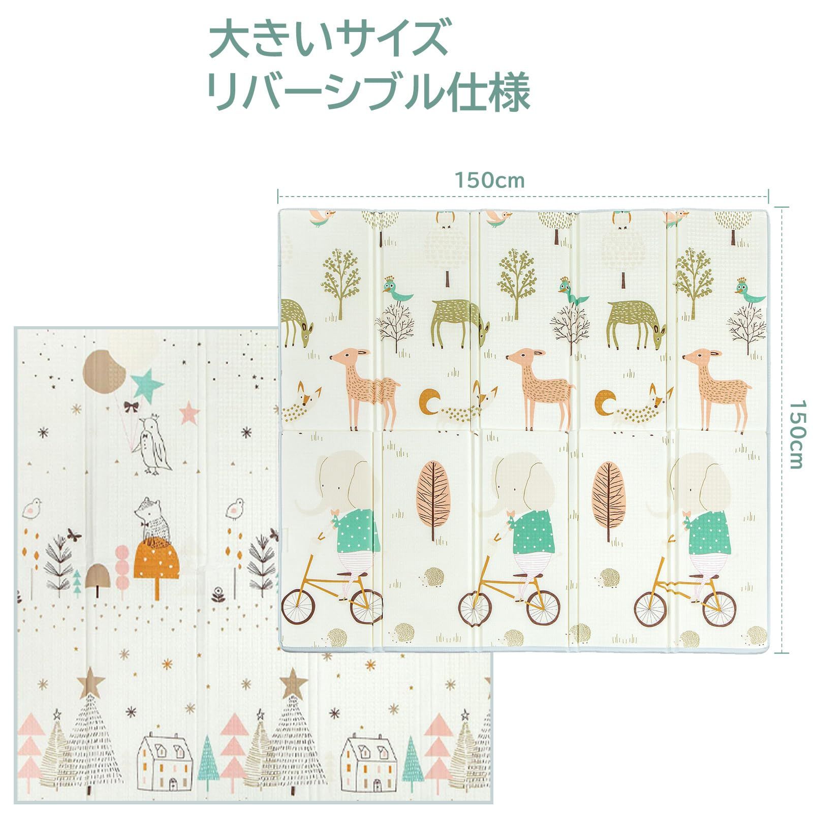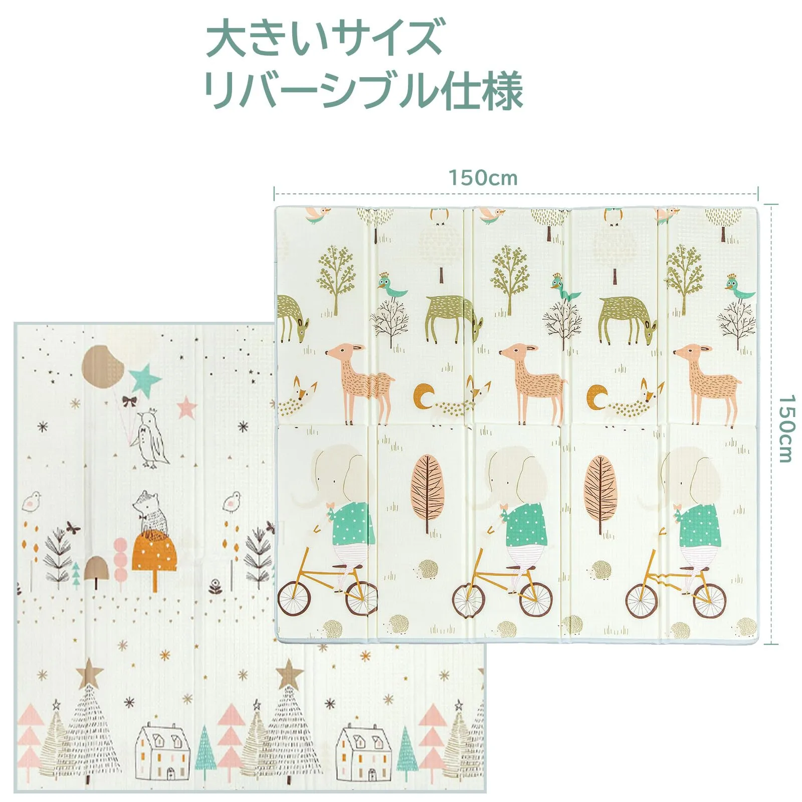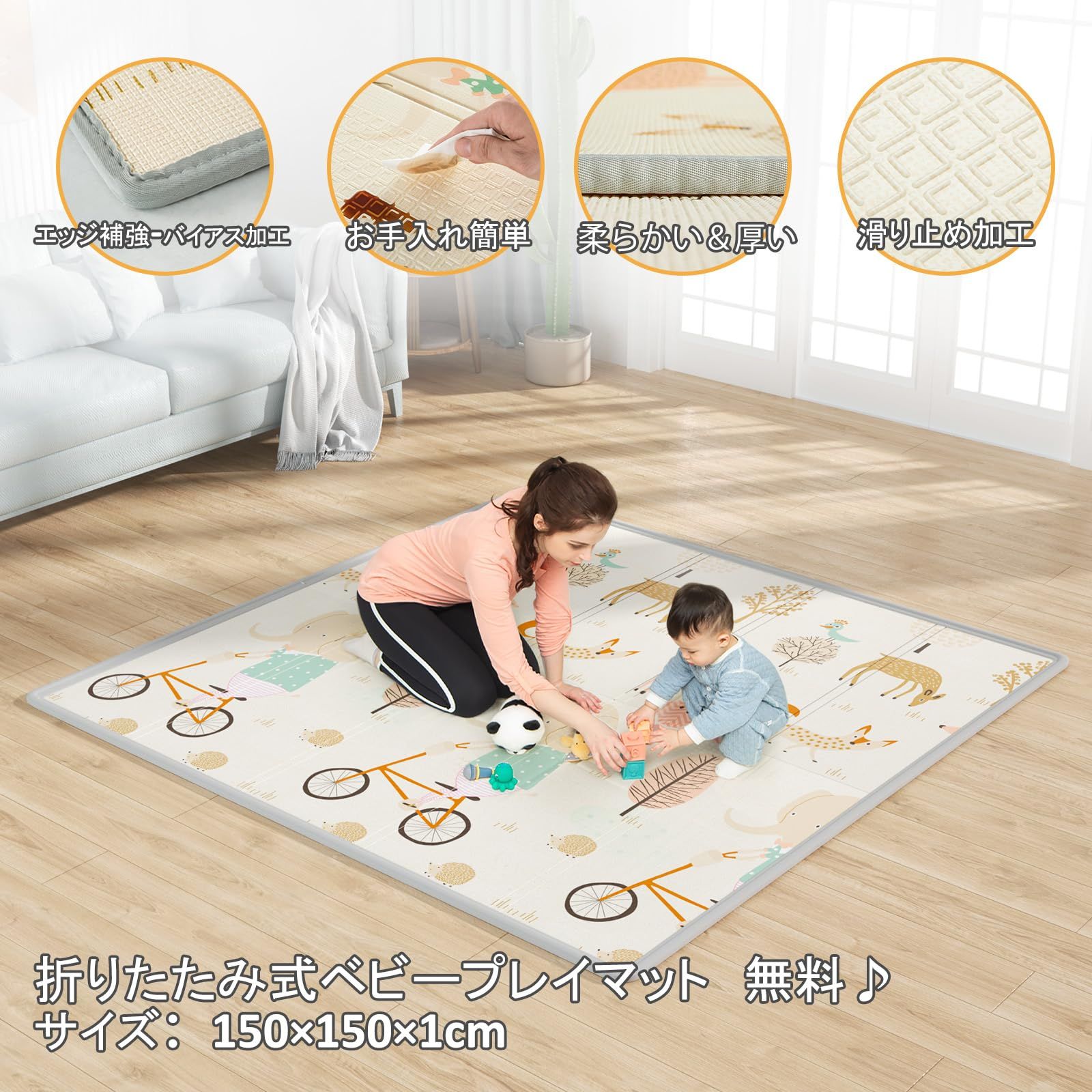 新品 Mloongベビーサークル プレイマット付き 大きめ 赤ちゃん ベビーマット ベビーフェンス 150x150x65cm ベビー プレイヤード サークル 扉付き 日本育児 子供遊び用