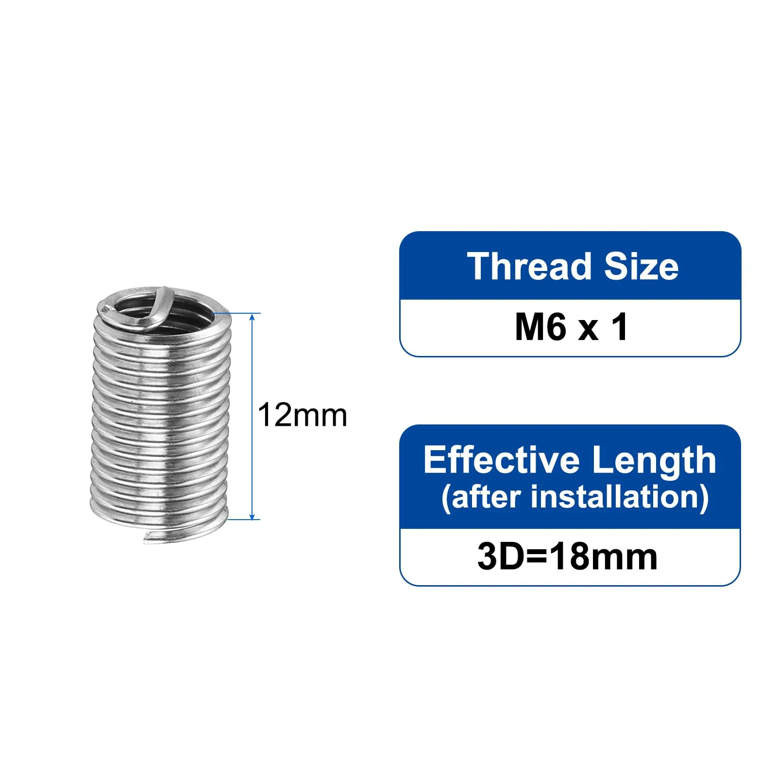 新品 uxcell 50本 インサート M6 x 1 3D ヘリサート 長さ12mm 304ステンレス ねじ込み コイル ワイヤー 電気 工事 作業 DIY 家庭用修理