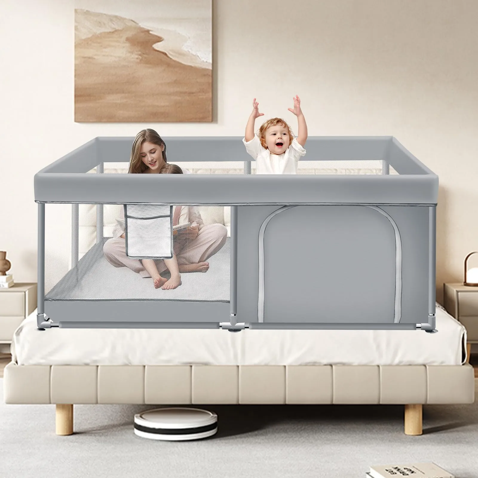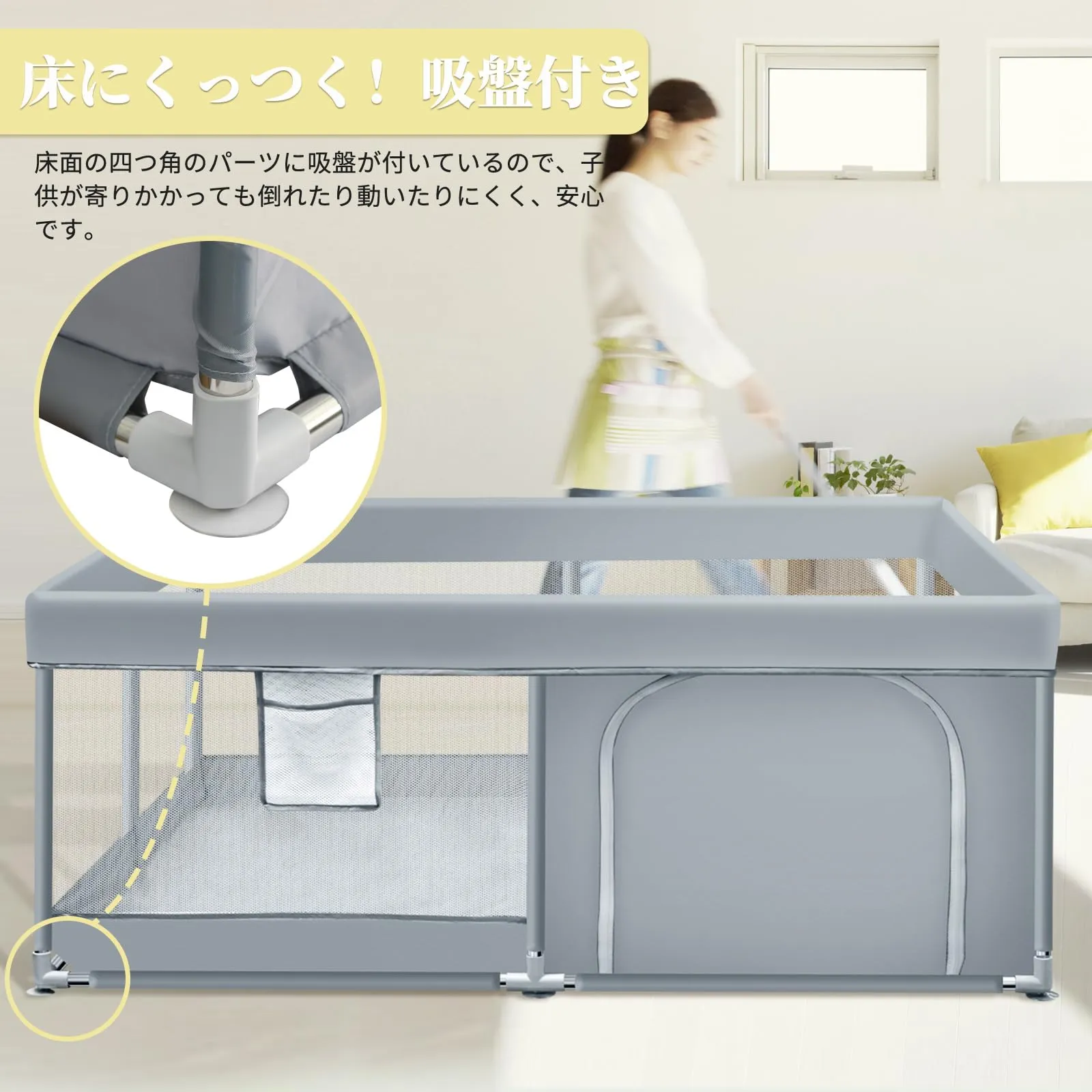 【通気性】通気性のあるメッシュ壁で設計され、視覚をより鮮明にします、いつでも相互作用ができ、赤ちゃんに安心感を与えます。メッシュ素材で周りが見えるため、赤ちゃんも安心して遊べます。ファスナー式の扉が付いています、開けたままにしてお。