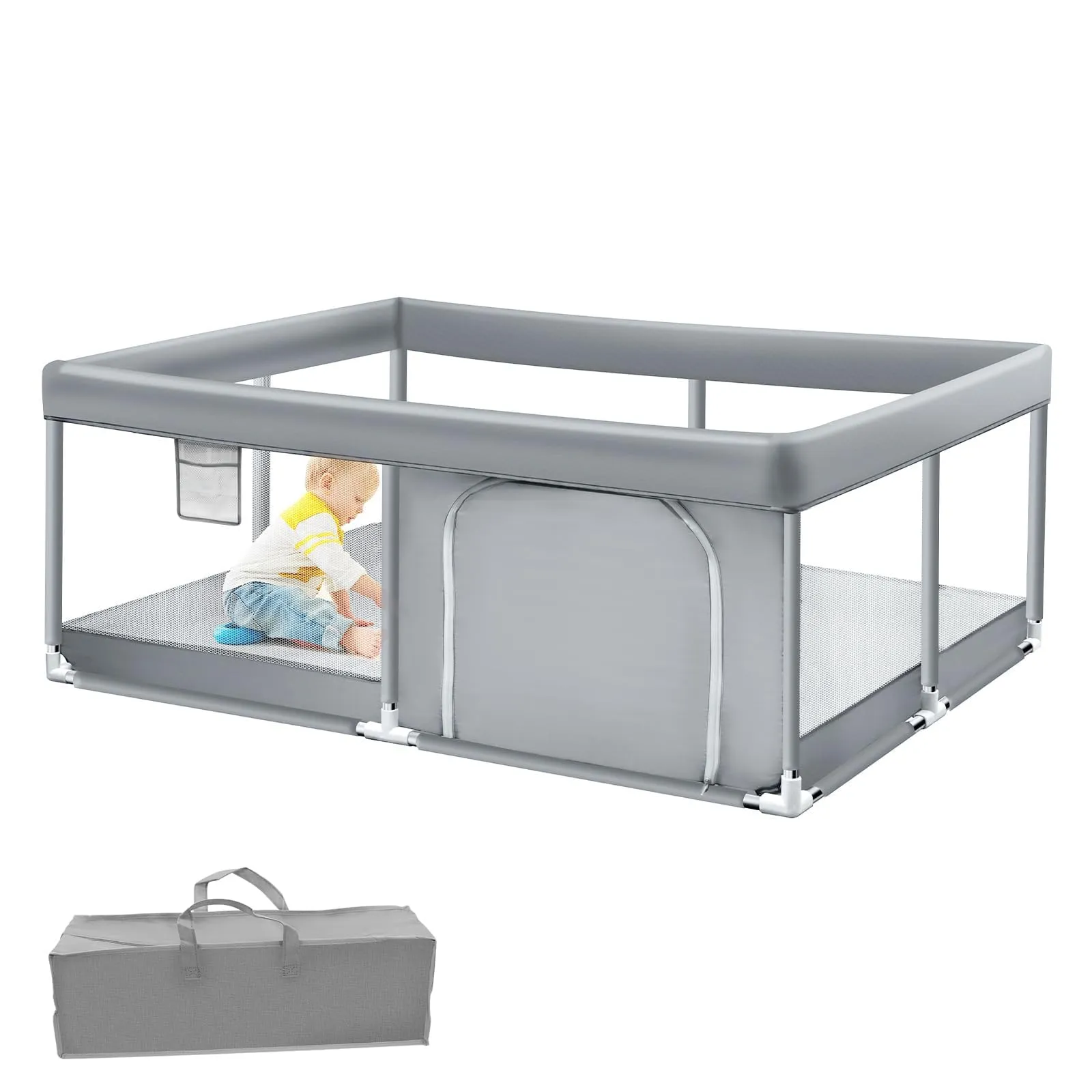 Areden ベビーサークル フェンス ベビーフェンスサイズ 150x180x65cm簡単 洗える 洗えてたためる 省スペース 室内外対応 堅固さ 耐久性 子供 軽量 長方形 安全 グッズ 柵 折り畳み 遊び用のサークル 持ち運び便利 キッズスペース 幼稚園(グレー、 ドアなし)