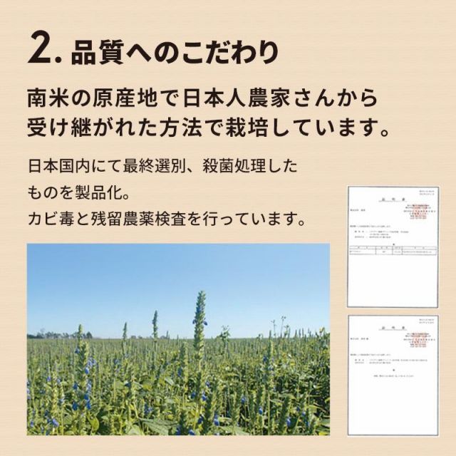 南米の原産地で日本人農家さんが栽培している高品質のチアシードです。トレーサビリティ(生産者がわかる)システムにより、農場を限定して契約栽培しております。 こだわりの栽培方法にご理解頂いた農家さんとのみ契約しております。
