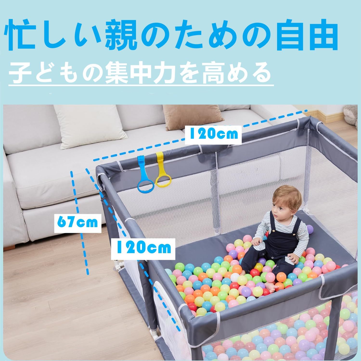 新品 ベビーサークル 120x120cm 赤ちゃん 小さめ 扉付き ベビーフェンス 折りたたみ baby playpen 子供サークル 組立簡単 洗濯可能 収納バッグ付き 日本育児 子供遊び用 (グレー)