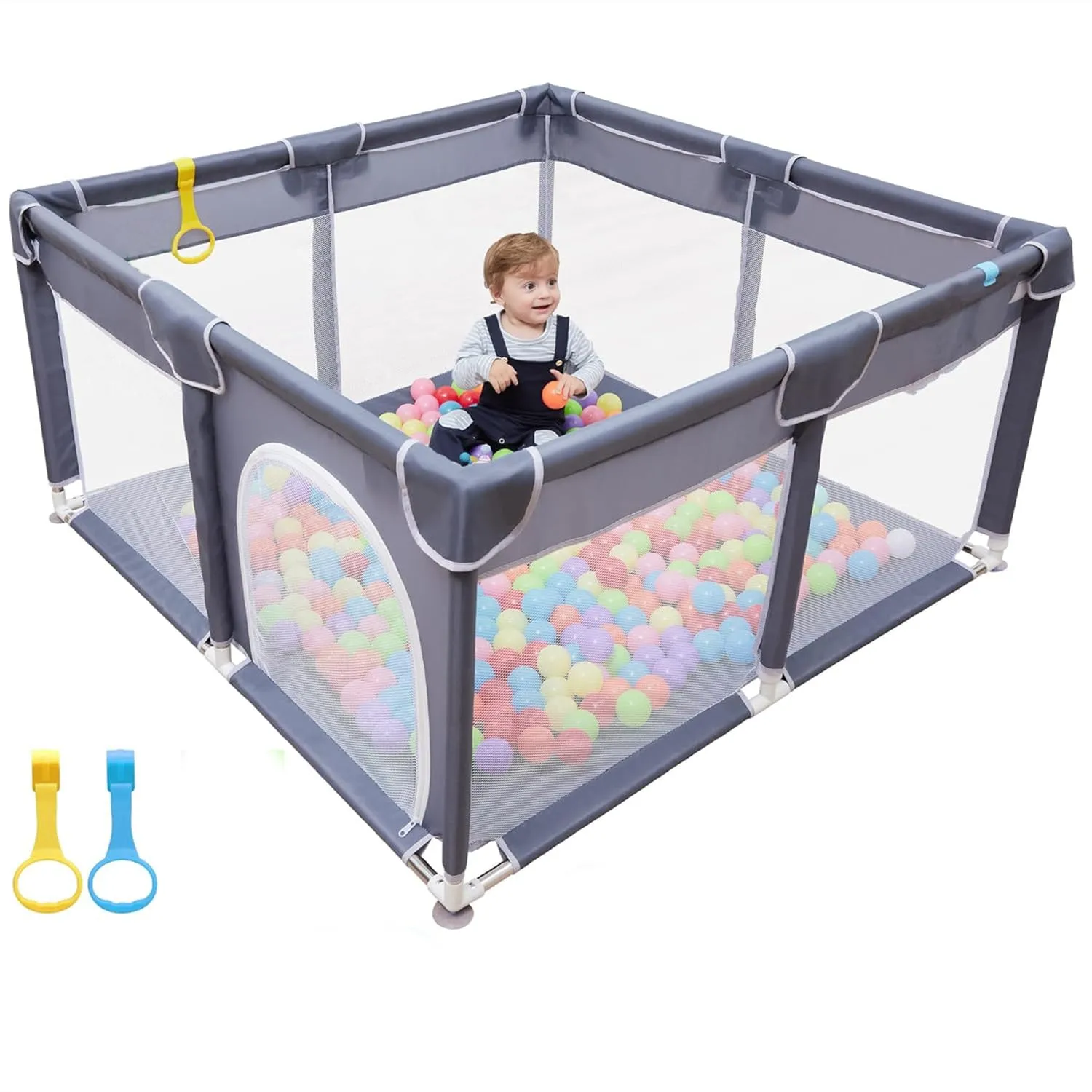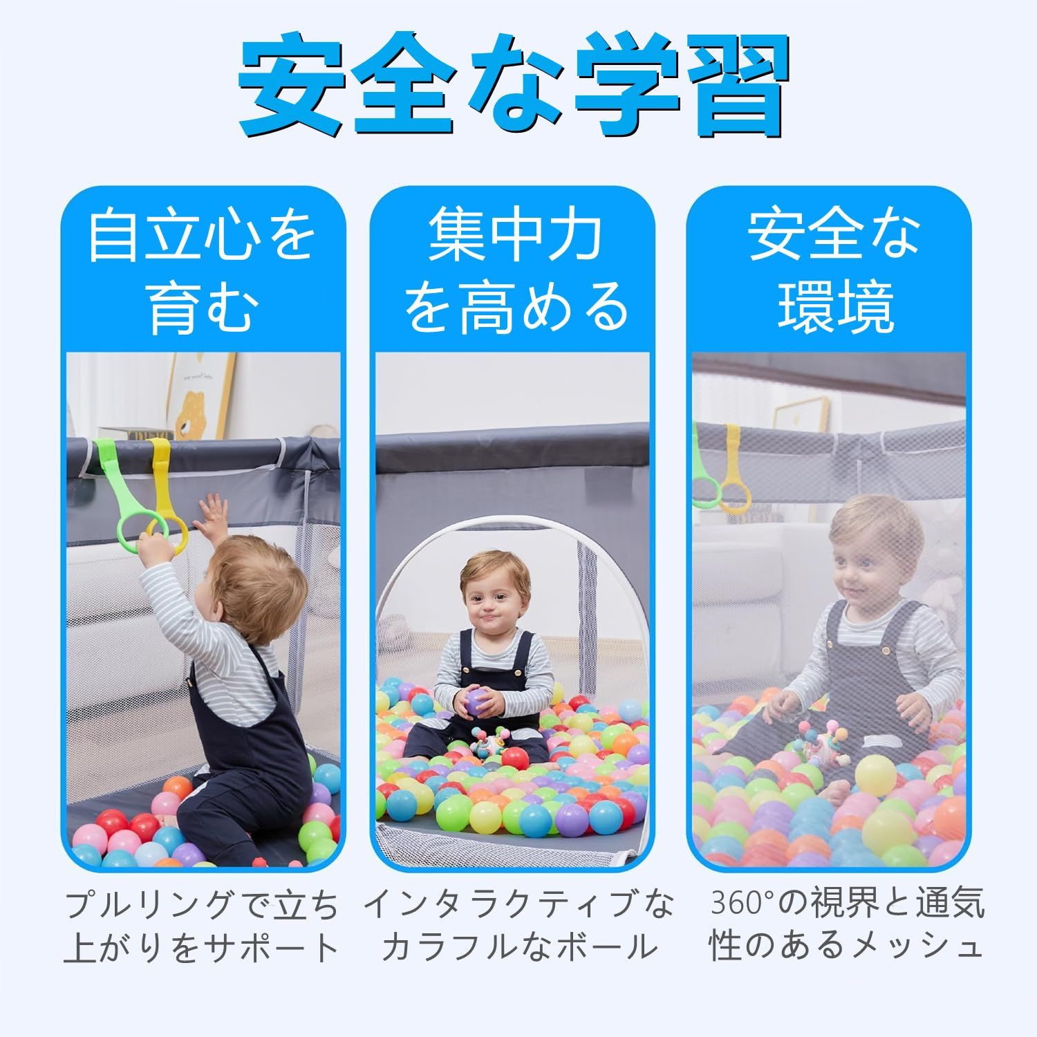 360°フルビューのデザイン: 赤ちゃんや幼児用の広々とした大きなベビーサークルを使って、通気性の高いメッシュ壁に囲まれた魔法の世界にいる小さな探検家を想像してみてください。この赤ちゃんと幼児用ベビーサークルで、あなたのスペースを小さな遊び場のパラダイスに変えましょう。子どもたちはネットの外の多方向から見ることができるので、座っていても寝ていても安心です。