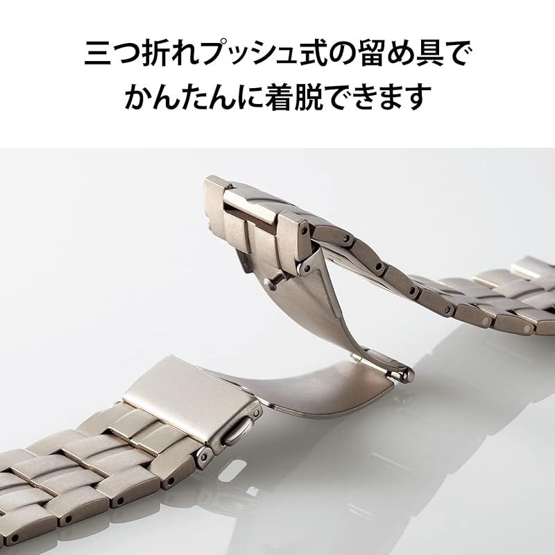 [エレコム] アップルウォッチ Watch バンド 【49mm 45mm 44mm 42mm / Ultra 3/2Ultra, SE3/2/SE, 11 10 9 8 7 6 5 4 3 2 1 対応】 チタン ステンレス 金属 三つ折れプッシュ式 シル 1