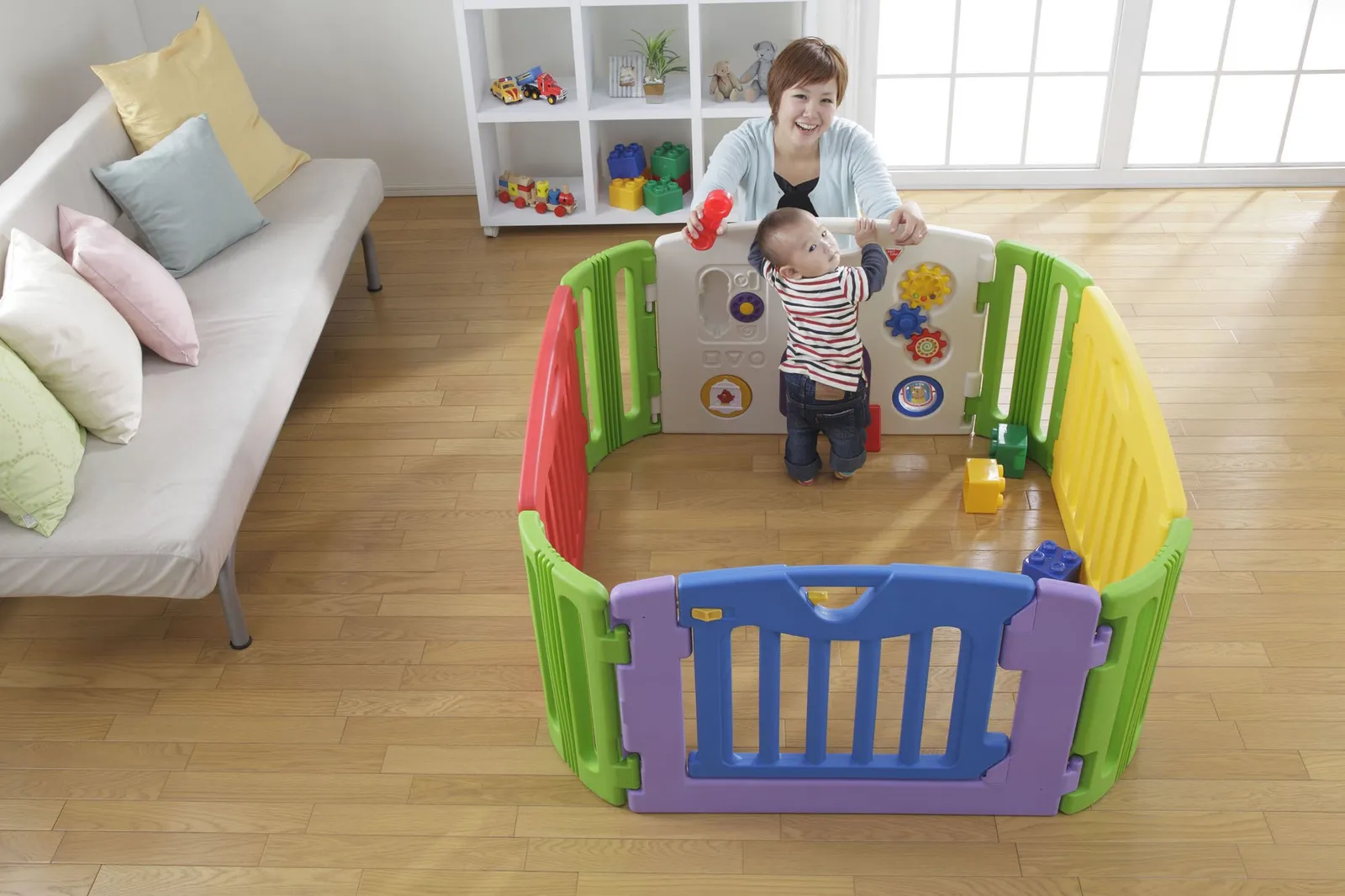 日本育児 ベビーサークル ミュージカルキッズランド スクエア 6ヶ月~3歳半頃対象 拡張しやすい四角型ベビーサークル