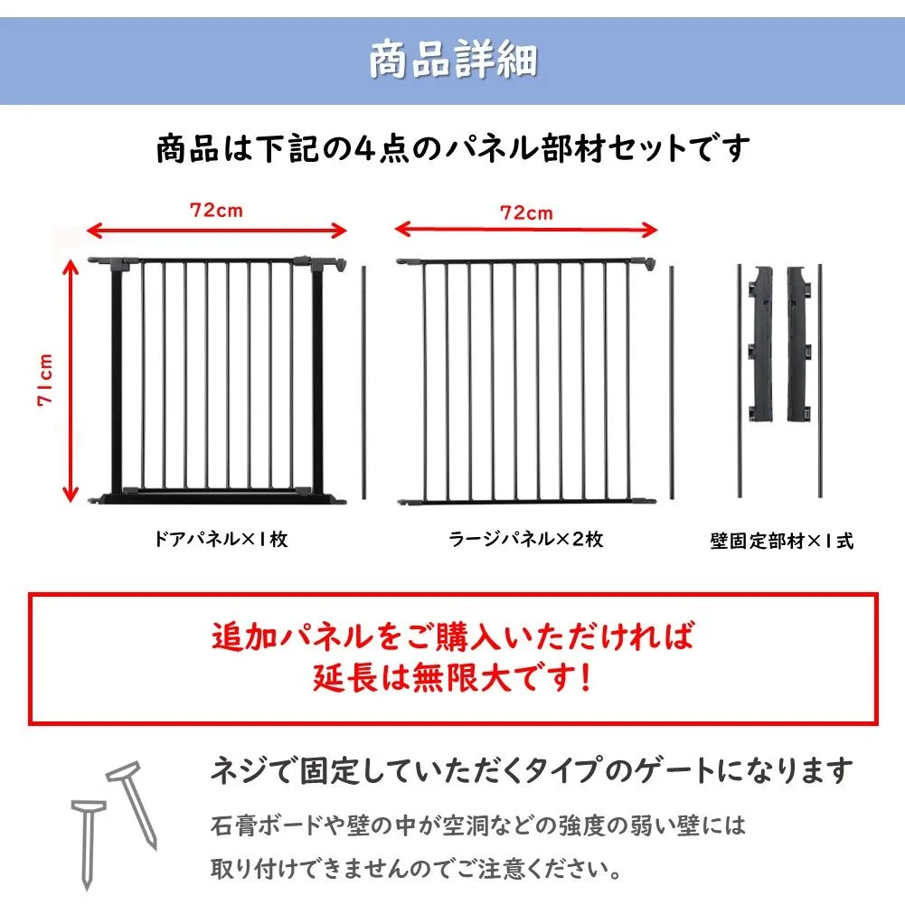 ■同梱品 ドアパネル x 1枚(W72×H71cm) ラージパネル x 2枚( W72×H71cm) 壁固定部材×1式