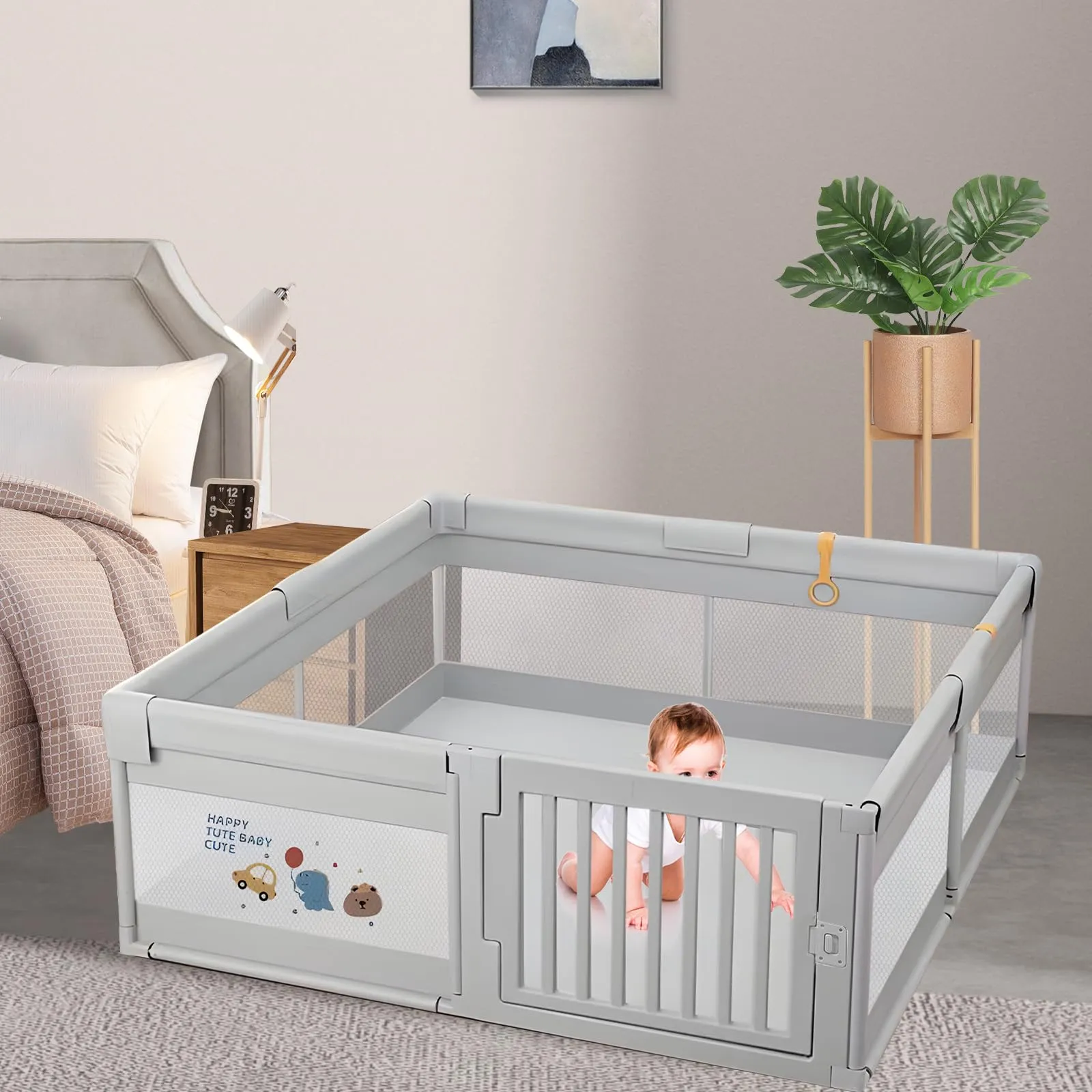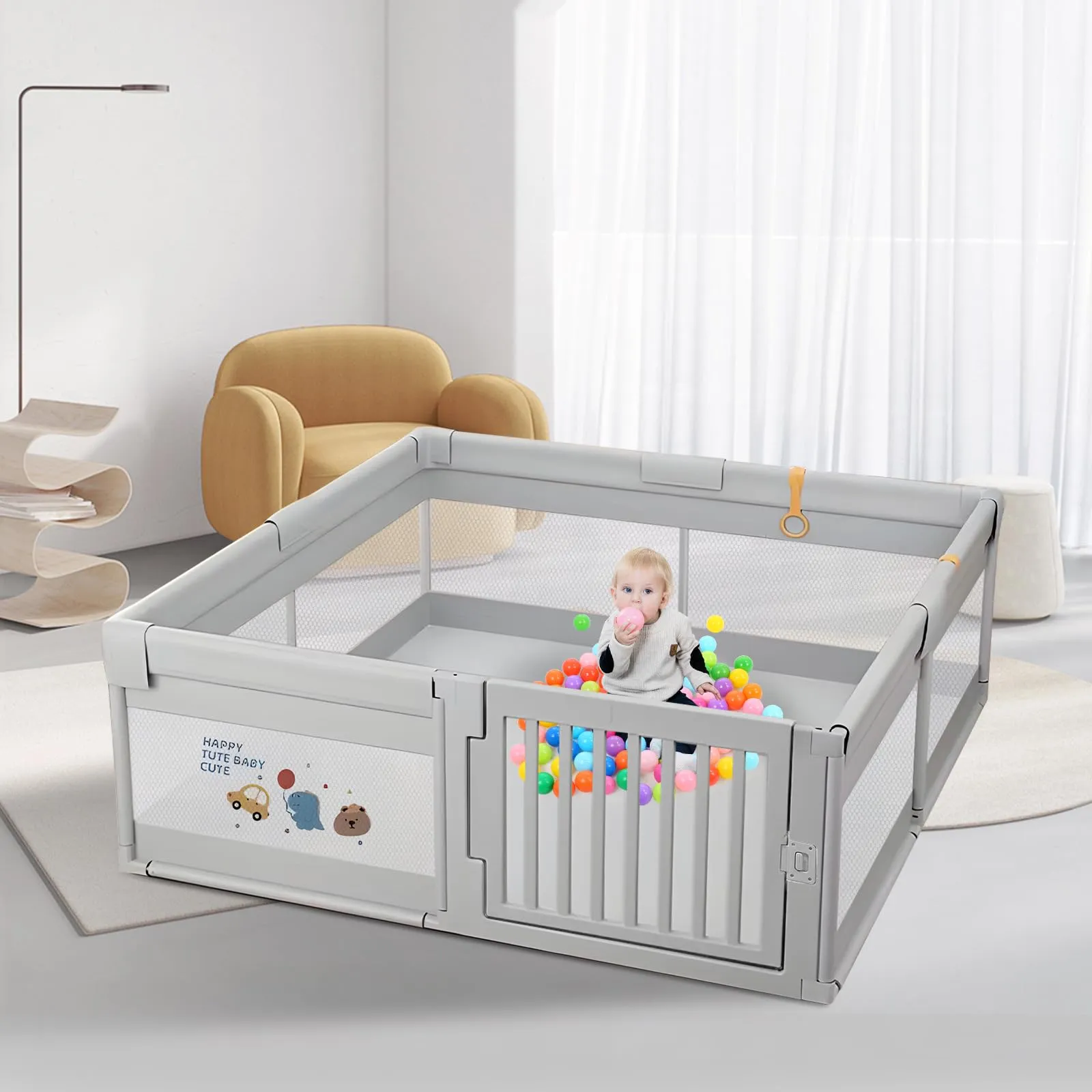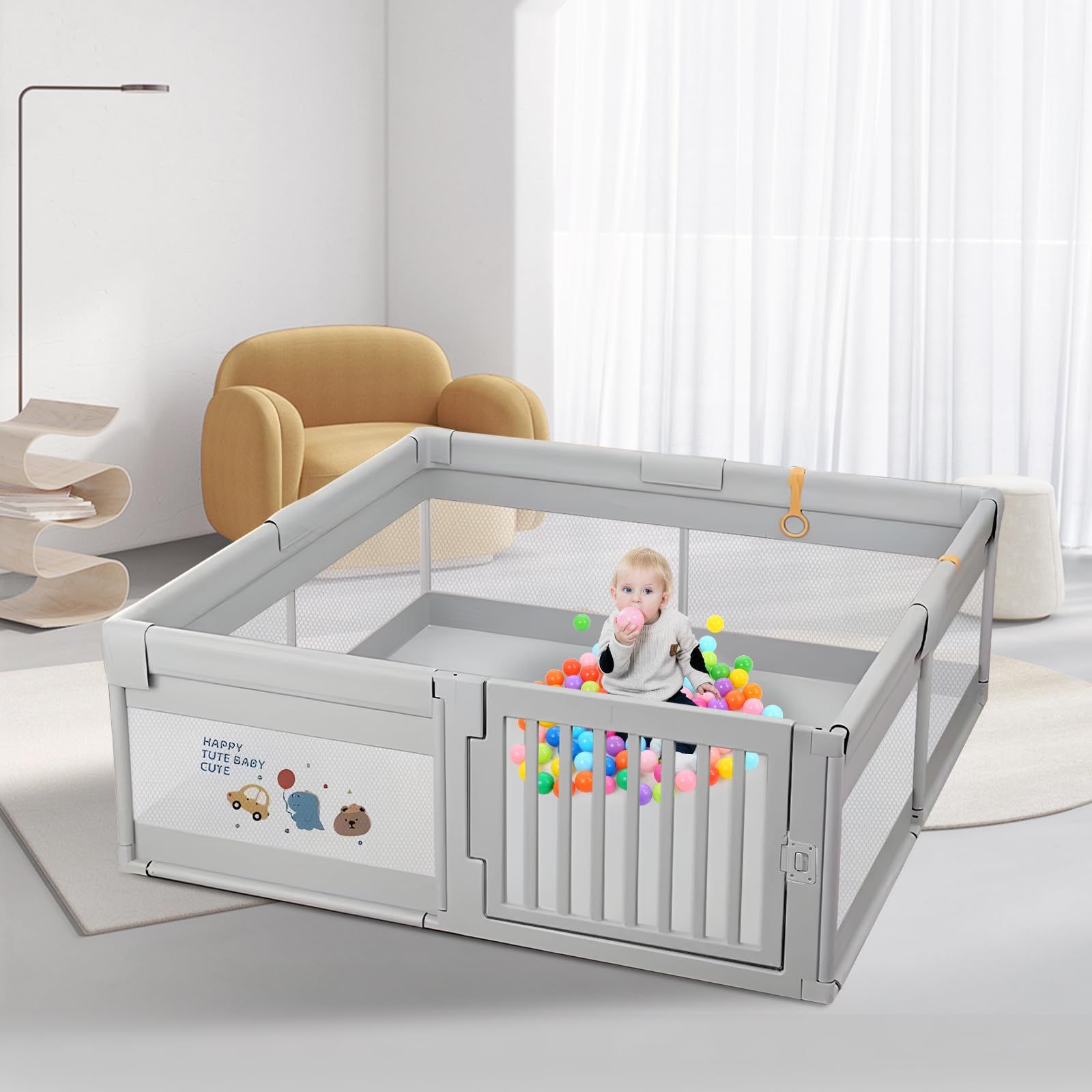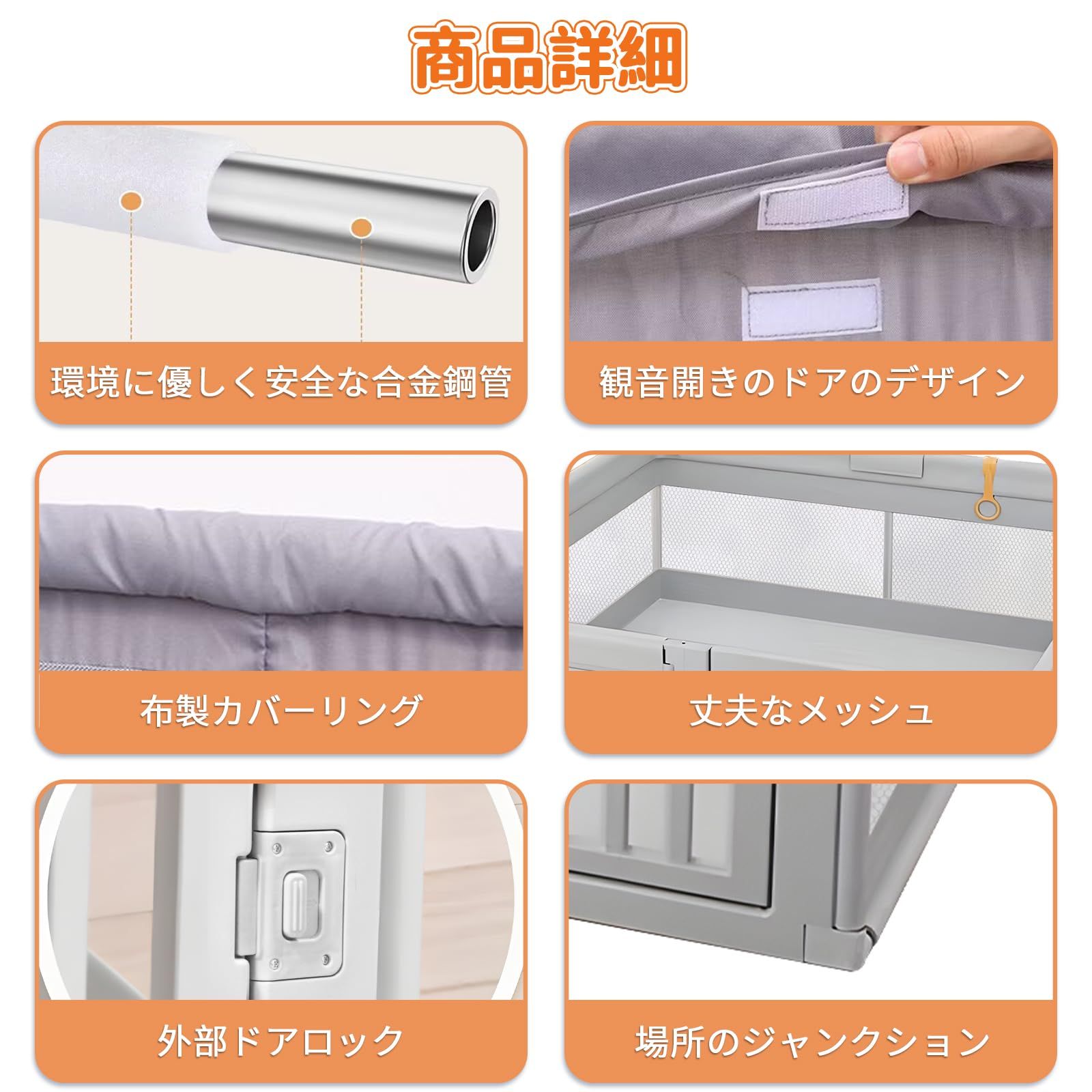 【通気性】通気性のあるメッシュ壁で設計され、視覚をより鮮明にします、いつでも相互作用ができ、赤ちゃんに安心感を与えます。メッシュ素材で周りが見えるため、赤ちゃんも安心して遊べます。ファスナー式の扉が付いています、開けたままにしてお。