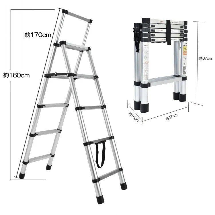 はしご 伸縮脚立 1.4m×1.7m 持ち手つき コンパクト 折りたたみ アルミ製 作業台 足場 踏み台 DIY 高所 作業 家庭 掃除 修理 生活用品 エアコン掃除 アルミはしご 万能はしご ny187
