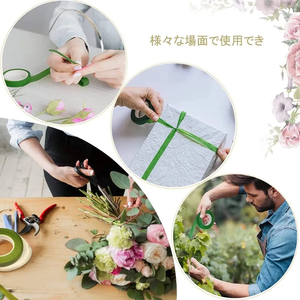 【高品質の素材】このフローラテープは、テクスチャ付き紙+水ベースの接着剤材を採用しており、高品質で耐久性、これにより、強い接着力と信頼性があります。また、滑らかで柔らかい質感があり、花の作品がより精巧になります。