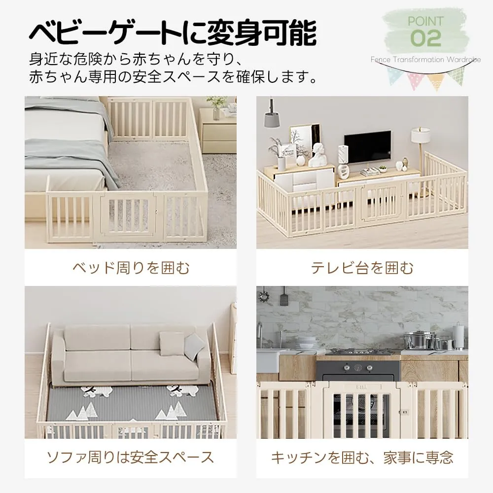 新品 OSJ ベビーサークル 内径122*150cm 外径変形可能 収納棚へ変身可能 扉付き ベビーゲート ベビーフェンス プレイヤード 簡単組立 柵 キッズ【内径122*150cm】
