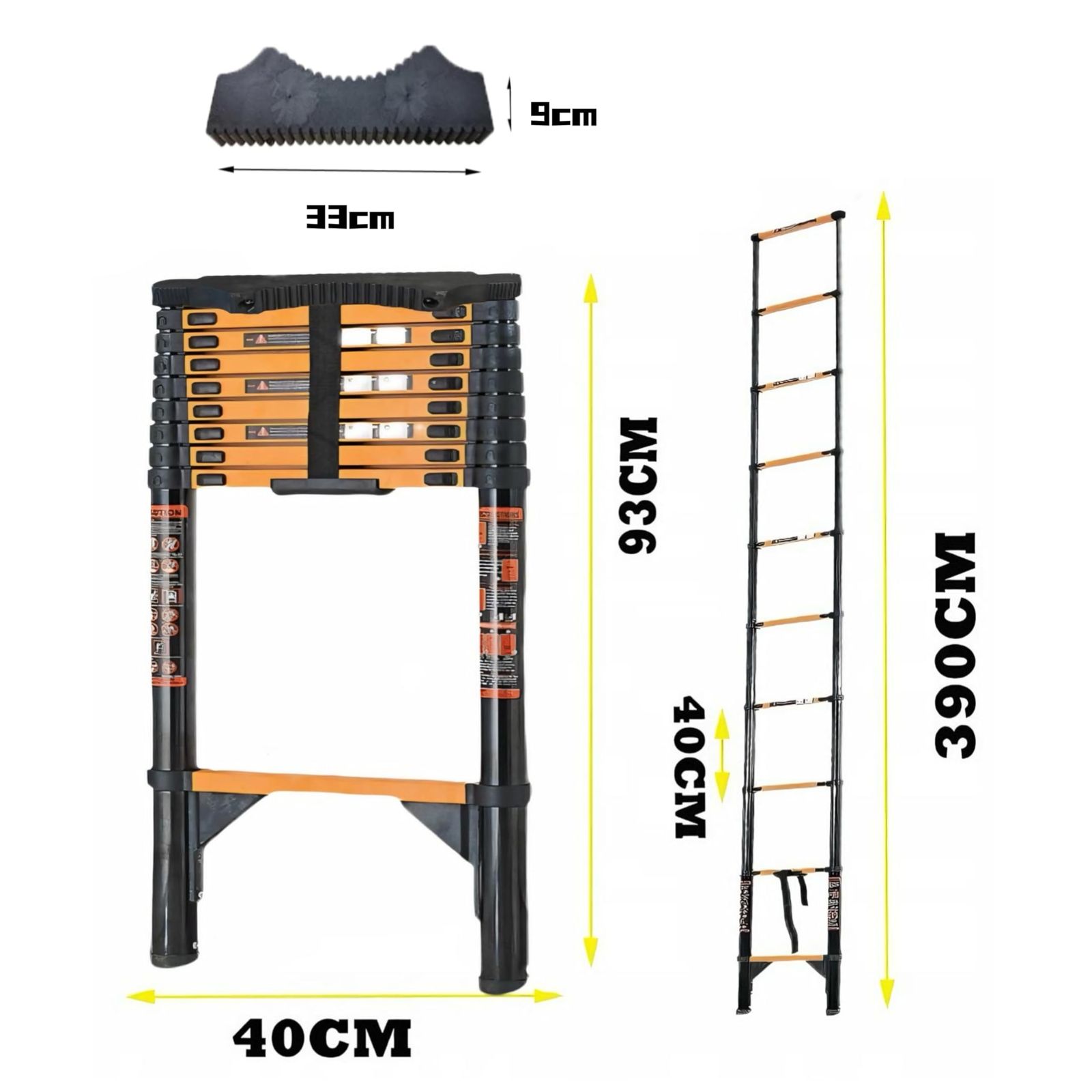 【Hooha新しいデザイン】 Hoohaの最新の伸縮はしごは、3.9m/5.1m/6.3mの3種類のサイズで特別に開発されました。 伸縮はしごは真新しい炭素鋼材料で作られており、より安定していて耐久性があり、最大150kgまで耐えることができます。このはしごは、屋内・屋外を問わず、あらゆる状況に適しています。 植木の剪定、ロフトへの上り下り、電球の交換、窓拭き、ペンキ塗り、屋根の修理など。窓掃除や屋根の掃除にも幅広く活用できます。 当社の伸縮式はしごは、はしごが必要なあらゆる状況に適しており。生活がより便利で快適になります。
