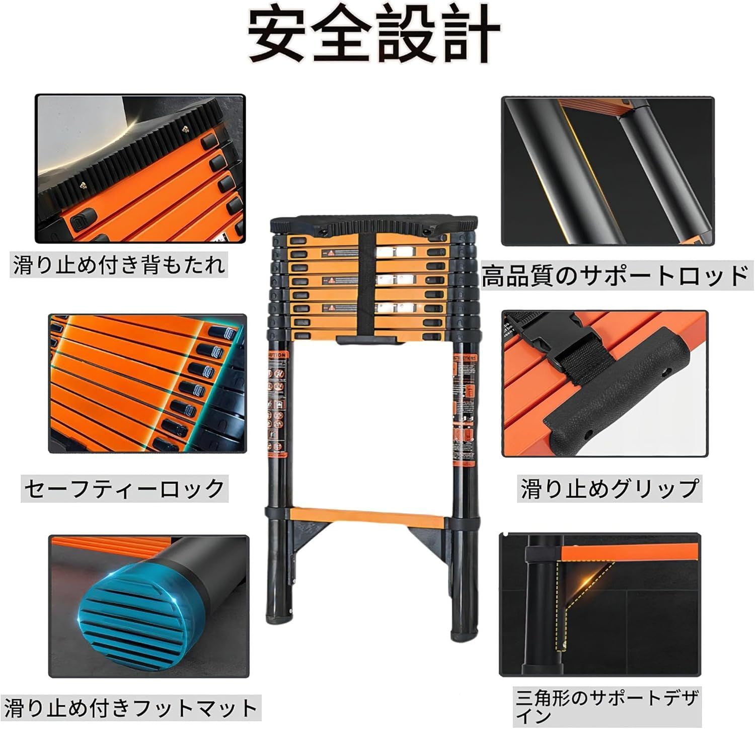 【持ち運びが容易&保管が簡単】携帯用セーフティ・グリップとリテンション・ストラップ付き どこへでも持ち運べる実用的なアイテム。重さはわずか20kg,収納サイズ:93*40*15cm、固定したベルトでステップの部分をしっかり固定できますので、携帯、運搬のどちらにも便利です。 こちらのはしごは折り重ねると小さくなり、気軽に自動車のトランクや、戸棚、ソファーの下などの狭い空間に収納することができます。伸縮式はしごは、ベッドの下、隅、ロッカー、車の中などに収納でき、どこでも簡単に使える。
