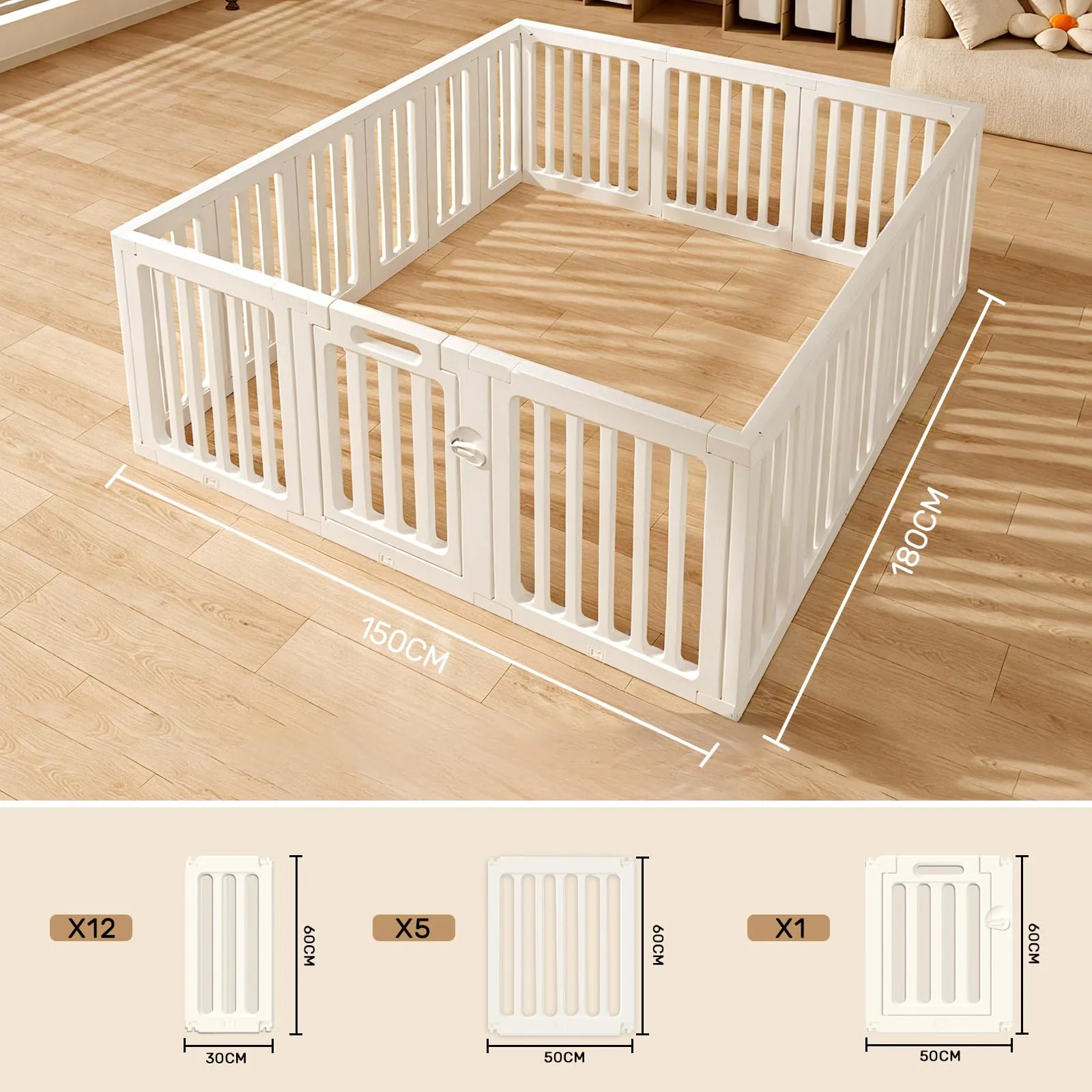【商品仕様】サイズ:150*180cm 小さなパネル:30*60*2cm ドア付パネル・大きなパネル:50*60*2cm 対象年齢:6ヶ月~3歳半 セット内容:パネル*8、ドア付パネル*1、日本語説明書*1 ベビーサークル ベビーゲート ベビーフェンス 変形フェンス ペット用可能 ドアロック付き 安全設計 滑り止め 赤ちゃん 子供用 室内遊具 組立簡単 出産祝い HDPE製 最後までご確認頂き誠にありがとうございました。 上記をご確認頂き、ご購入いただけましたら幸いです。 何かご不明な点がございましたらお気軽にメッセージからお問い合わせ下さい。