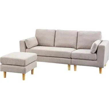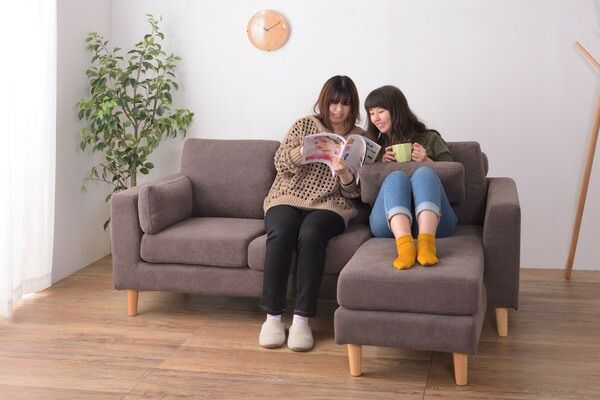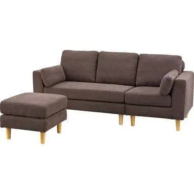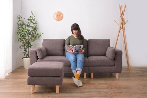 【トルエ ソファ】ソファー 3人掛け カウチソファ 北欧 カバーリング ポケットコイル オットマン付き クッション付き 脚取り外し ロータイプ使用可 おしゃれ ベージュ ブラウン グレー