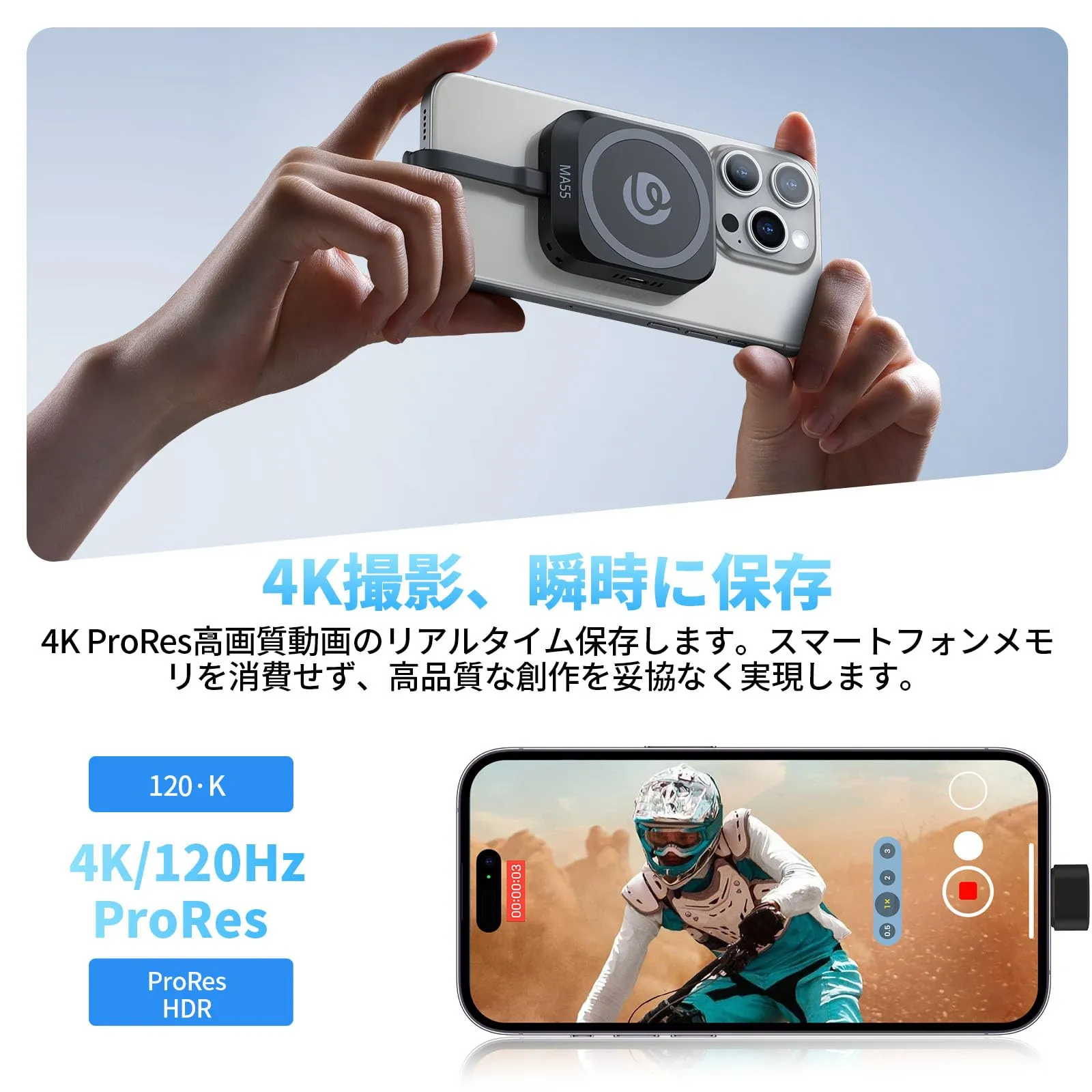 【4K ProRes直接録画】4K ProRes高画質動画のリアルタイム保存します。スマートフォンメモリを消費せず、高品質な創作を妥協なく実現します。