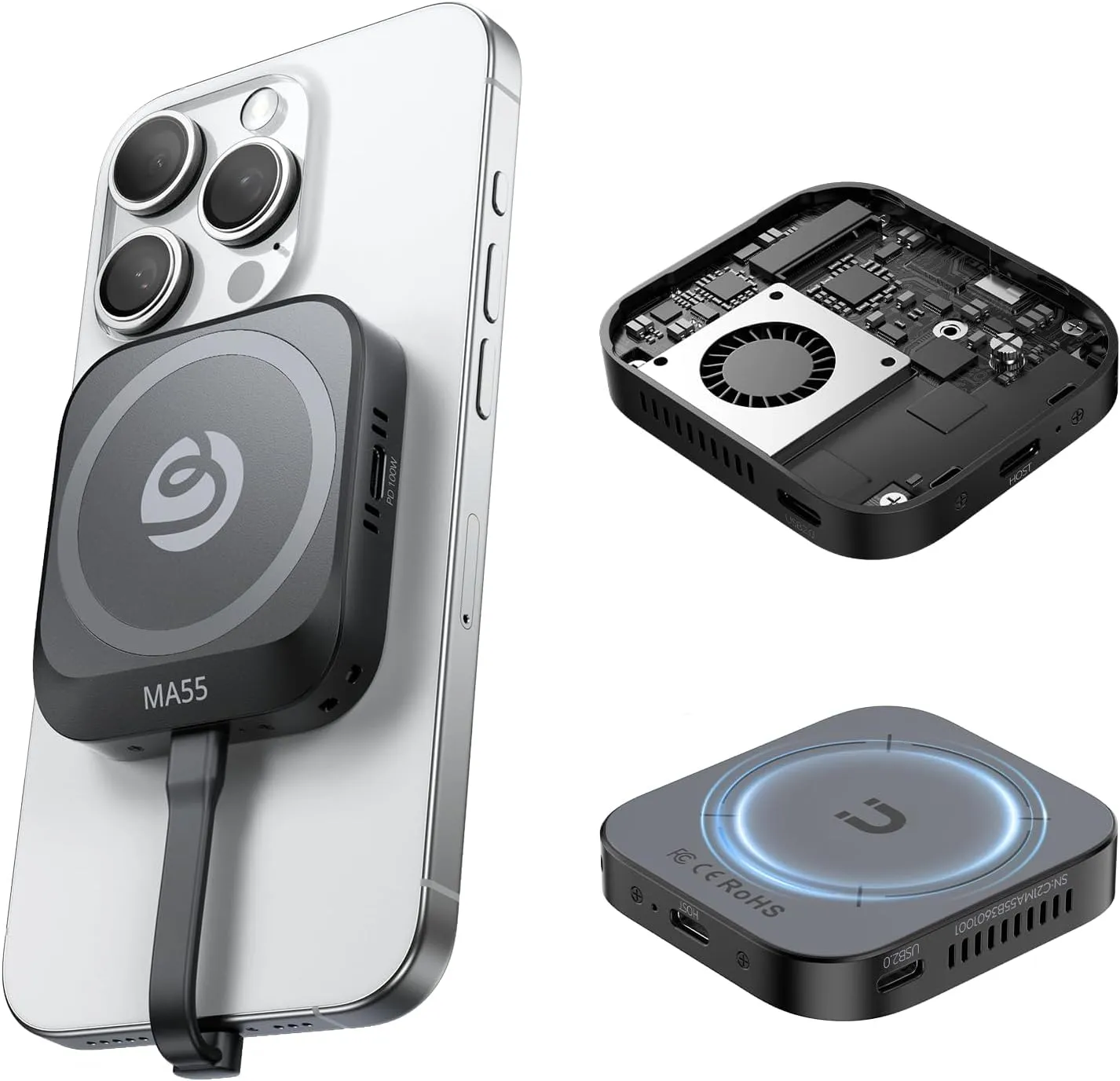 Ulanzi MA55 M.2 SSD外付けケース SSDケース MagSafe対応 2TB 内蔵冷却ファン搭載 マグネット式 USB3.2Gen2 読出最大1050MB/秒 USB-Cケーブル付属 コンパクトで持ち運びやすい Windows/Mac OS、Android、iPhone等適用 NVMe 2230/2242に対応 (SSD 不含)