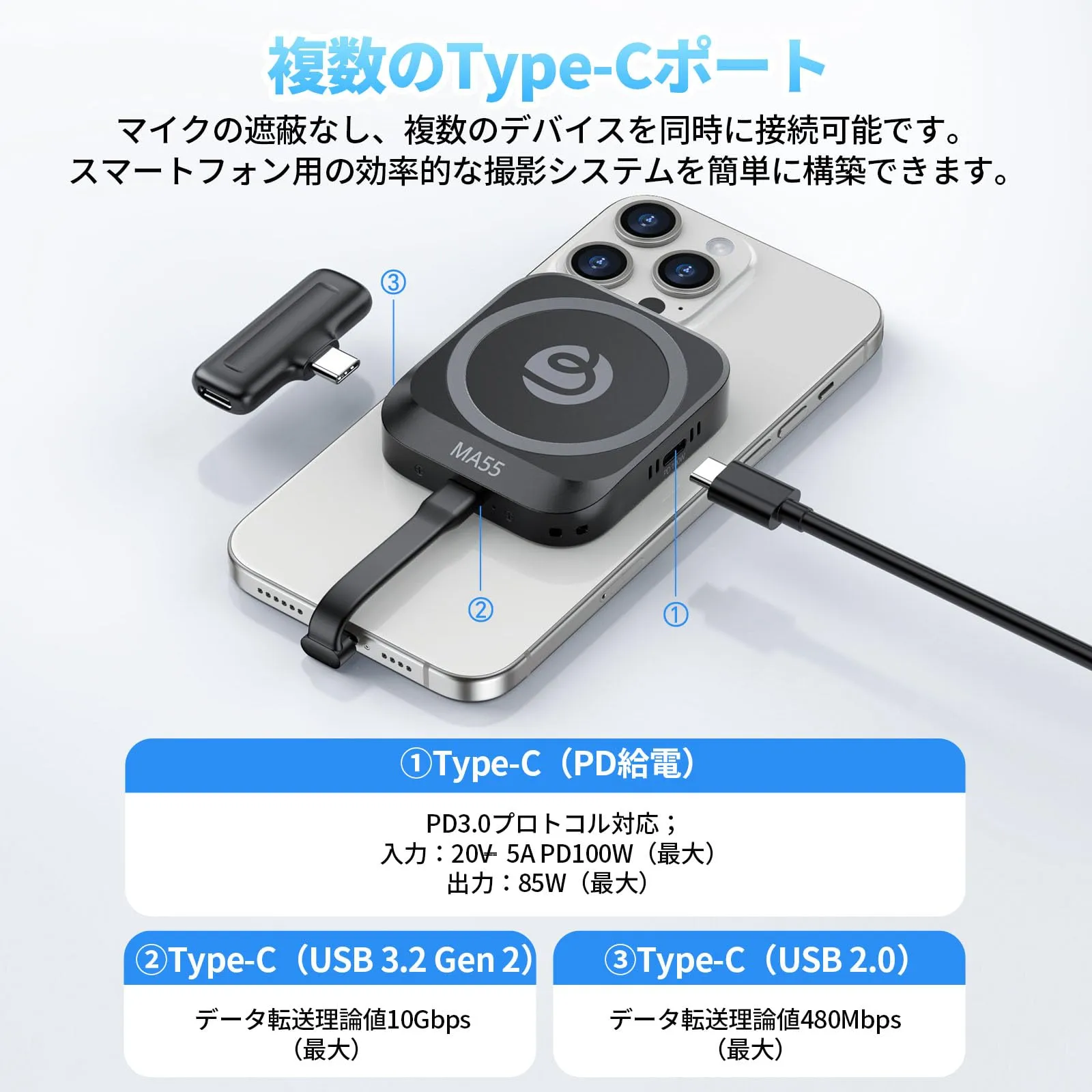 【マグネット式・Magsafe対応外付けSSD】Ulanzi MA55 SSD外付けケースは、 磁気吸着式の設計ですので、置くだけで片手でわずか1秒で着脱可能で取り付けや取り外しが簡単に出来ます。MagSafe磁気デザインを採用して、iPhone 17/16/15/14/13シリーズ以降のバージョンとMagSafeケースに対応できます。