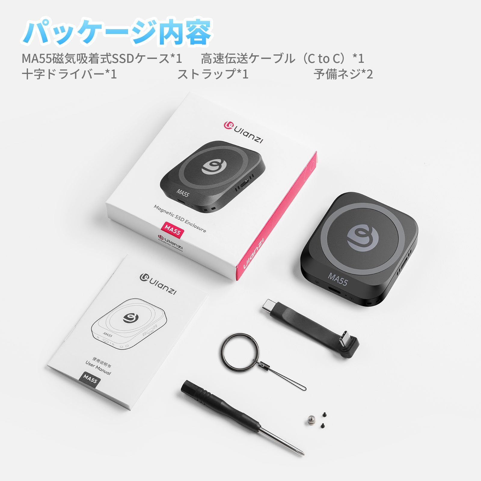 新品 Ulanzi MA55 M.2 SSD外付けケース SSDケース MagSafe対応 2TB 内蔵冷却ファン搭載 マグネット式 USB3.2Gen2 読出最大1050MB/秒 USB-Cケーブル付属 コンパクトで持ち運びやすい Windows/Mac O