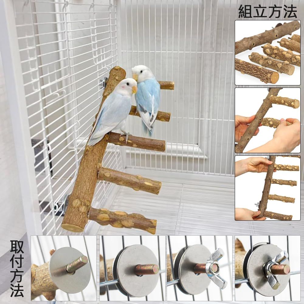 鳥 インコ とまり木 はしご 5階段タラップ 天然木 鳥のおもちゃ 快速取付 鳥籠アクセサリー