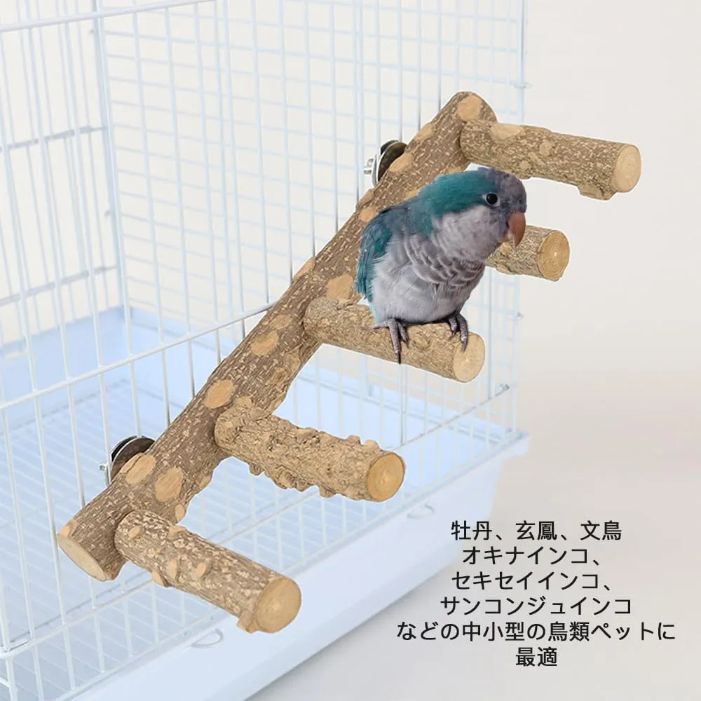 新品 鳥 インコ とまり木 はしご 5階段タラップ 天然木 鳥のおもちゃ 快速取付 鳥籠アクセサリー