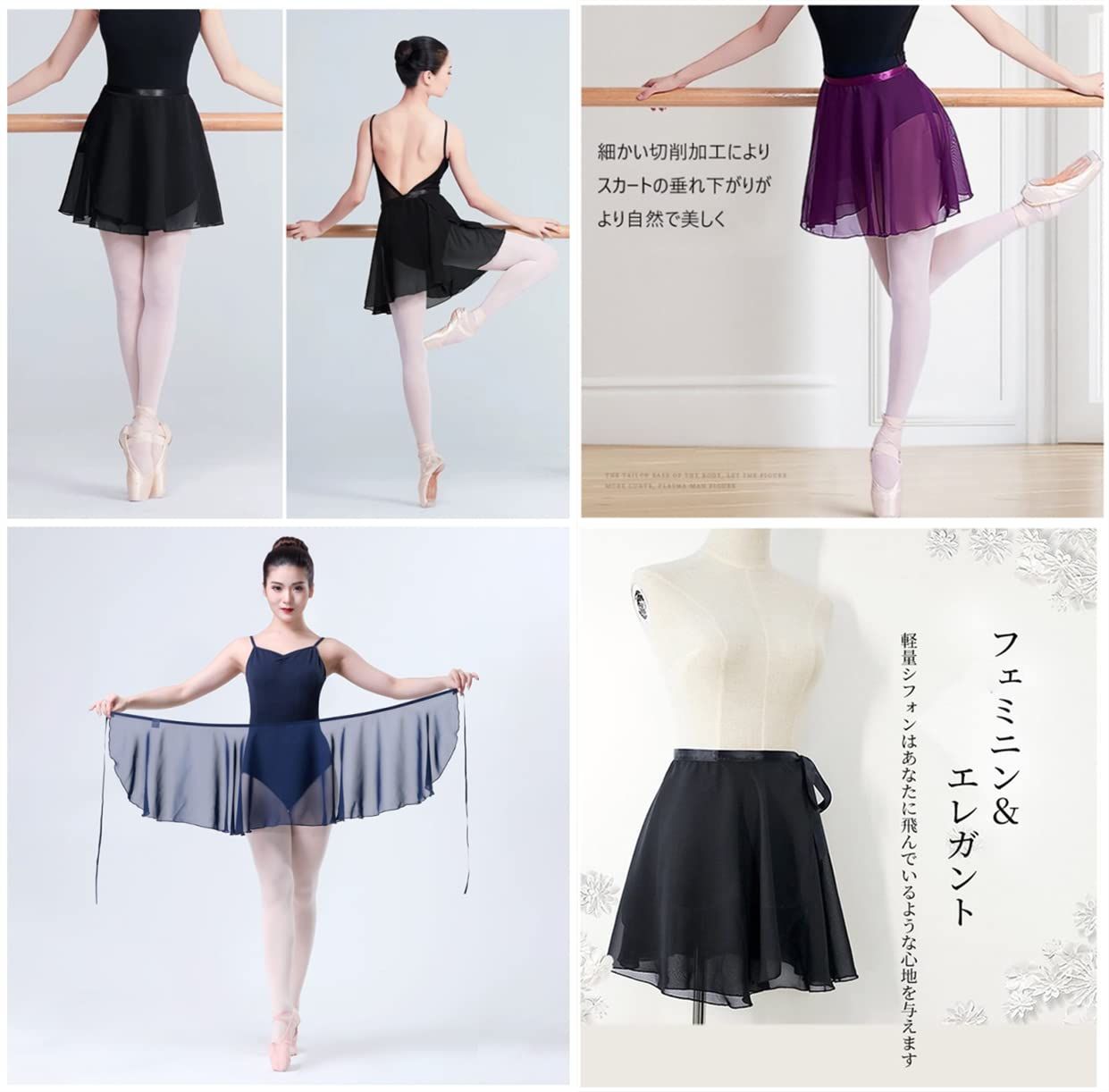 [Gincci] 巻きスカート バレエ スカート 子供~大人 レオタード バレエ用スカート ラップスカート シフォン ダンス用 大人 子ども レッスン着 バレエ用品 体型カバー 美ライン 美尻