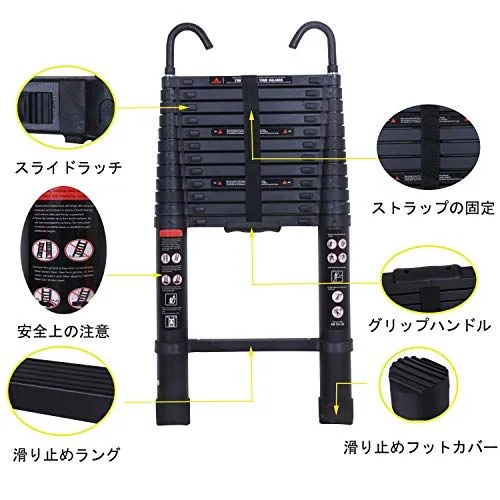 【高さ調節可能、安全独ロックがあり】ハシゴの全長(約):620cm, 階段数量:15段、階段1段あたりの距離は40cmとなっております。各段は個別のロックが装備されています、使用時に独立して柔軟に調整することで、お客様の様々なニーズにお応えします。