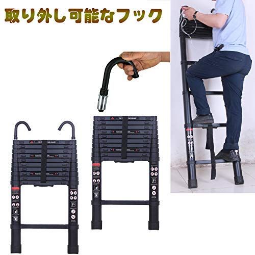 DayPlus 伸縮はしご 最長6.2 m 折り畳み伸縮梯子 フック付き 多機能