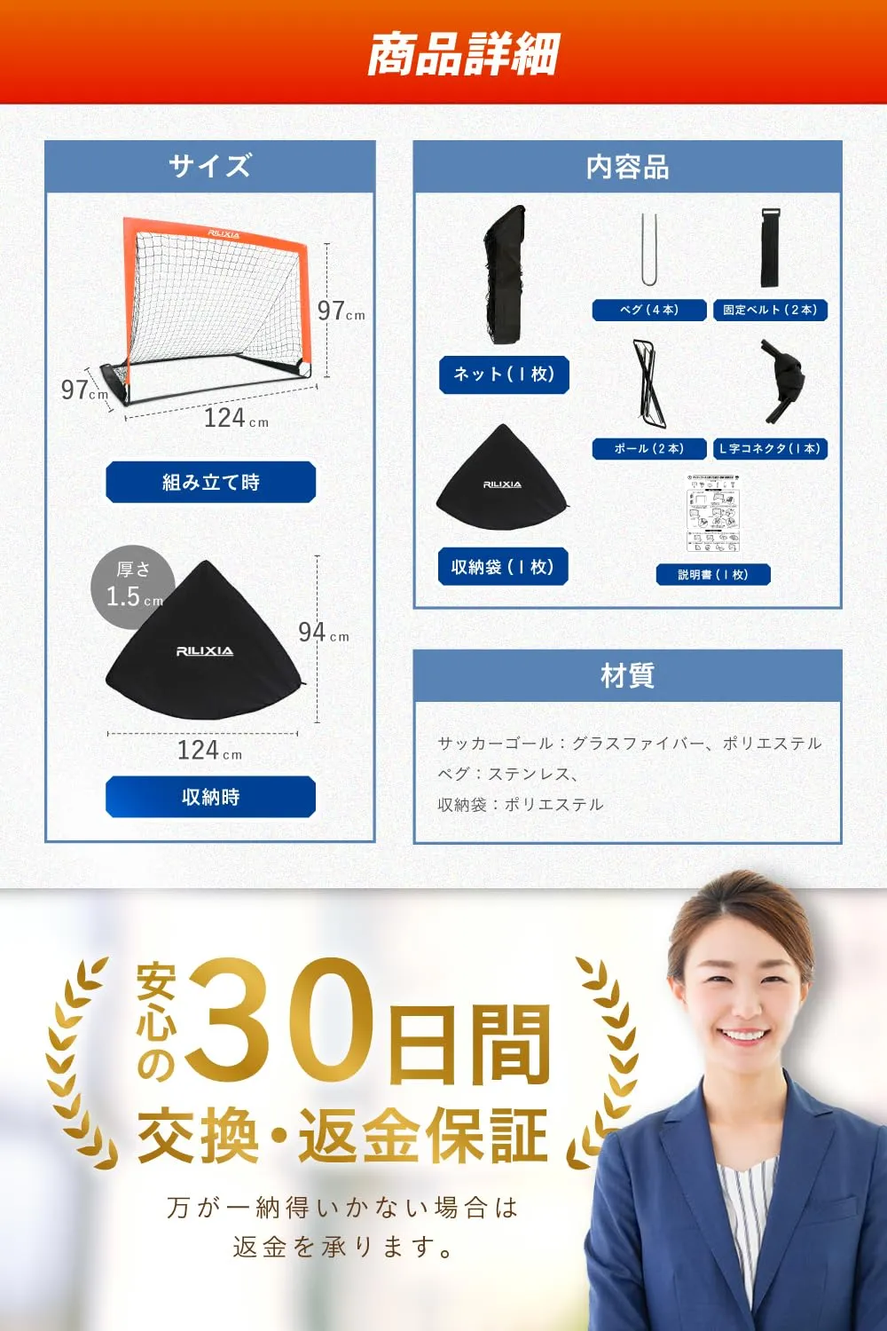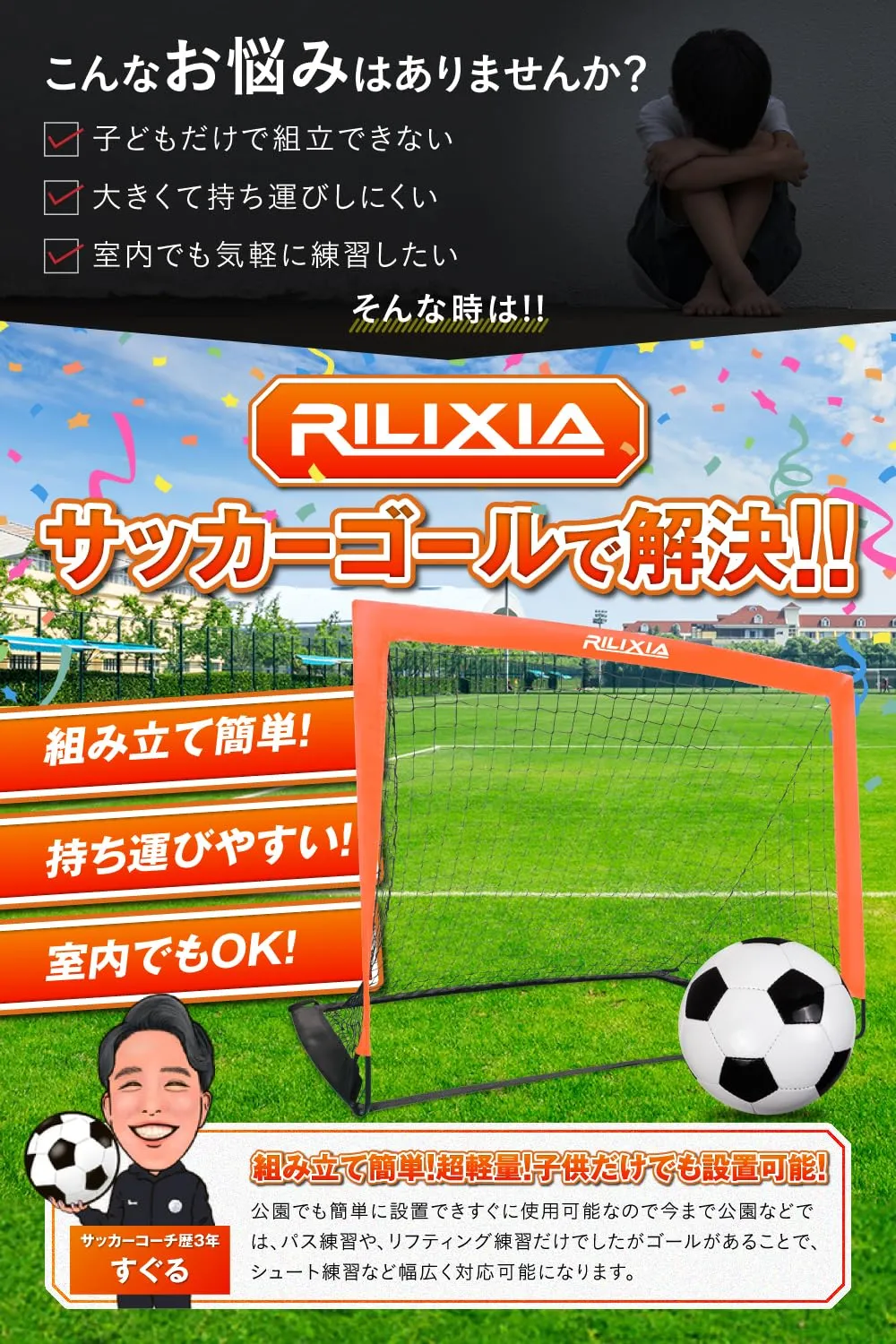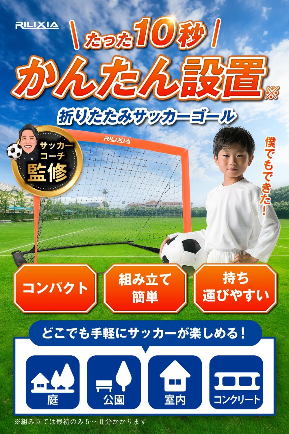 新品 【サッカーコーチ監修】RILIXIA 折りたたみサッカーゴール 94cm×127cm 子供向け 収納バッグ付き