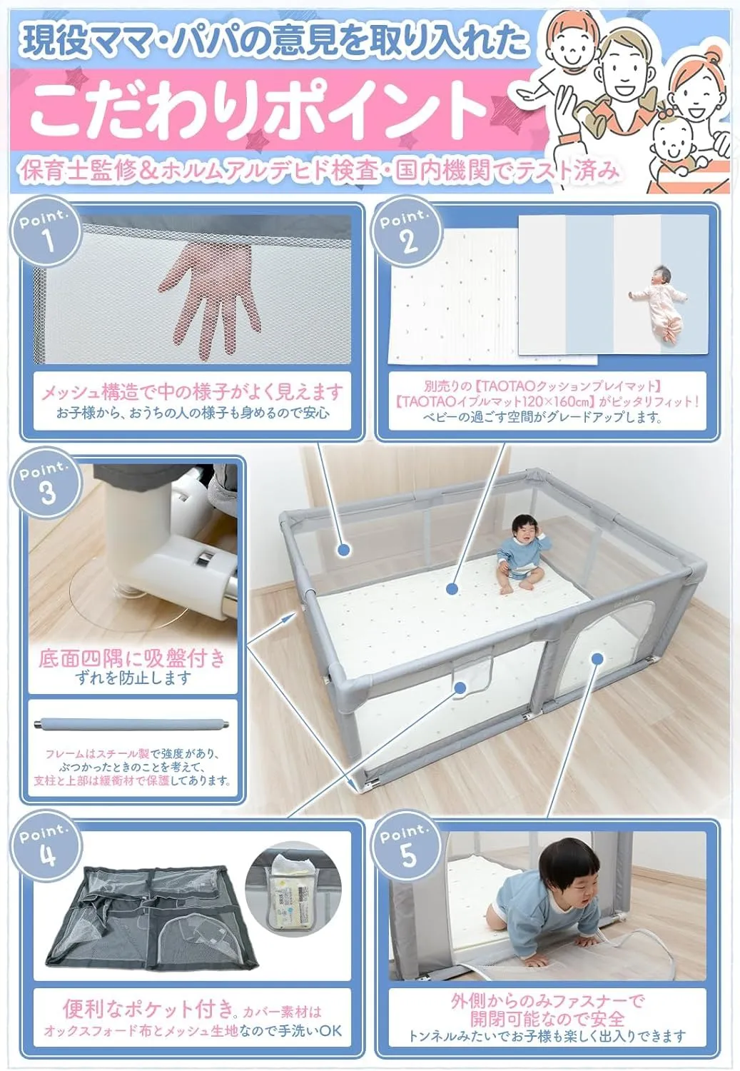 新品 【保育士監修】ベビーサークル 赤ちゃん メッシュ ベビーフェンス (ダークグレー(2ドア) 120cm×160cm) TAOTAO