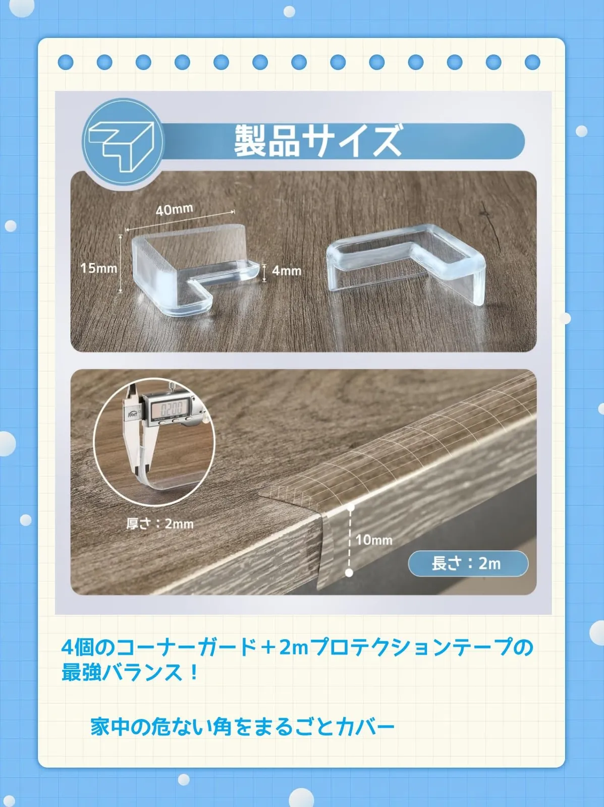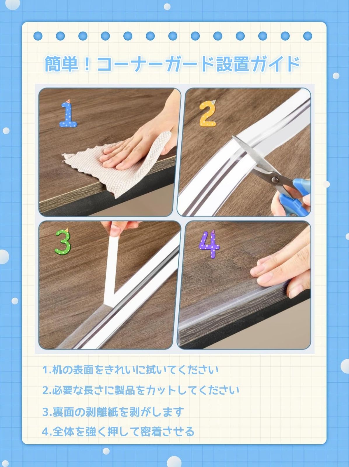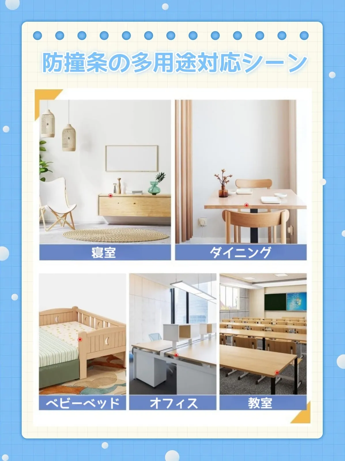 【多様なシーンに対応】 机角・棚・丸型/L字テーブル・壁の角など、家中の危険なコーナーに幅広く適用可能。