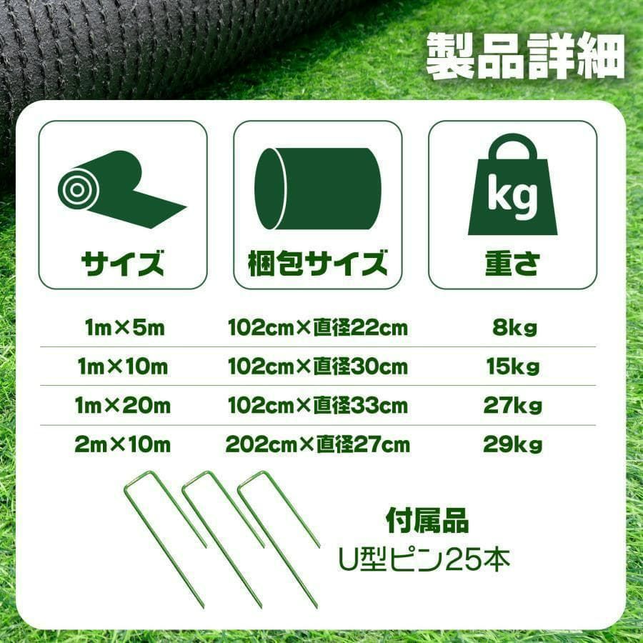 【商品説明】 本物のような触り心地 繊細な葉がぎゅっと密集し、まっすぐな葉と ウェーブ上の葉を混ぜることで、ふっくらやわらかい肌触りに。 ハリ・コシがあり、クッション性に優れているので、お子様やペット (ドッグラン)の遊び場としてもおすすめ。 好きなサイズに切って好きな場所に簡単に設置できる人工芝。 お庭、ベランダ、玄関など、様々な場所に敷くことができます。 高密度でふかふかの触り心地は思わず寝転びたくなるほどです。 自由にカットできるハサミやカッターで簡単カット。 裏面には水抜き穴が付いているため、水はけもバッチリ。 雨でも水が溜まる心配はありません。 お庭やベランダなど、広い場所にも敷きやすく、継ぎ目が目立ちにくい 人工芝です。 ◯商品仕様 ・材質:ポリエチレン樹脂、ポリプロピレン樹脂 ・付属品:固定ピン ・サイズ:外寸:幅1×奥行5m / 毛足:35mm #Shop一攫堂の園芸・ガーデニング用品の出品一覧はこちら ※ご注意※ 基本的に送料込みで出品しておりますが、北海道・沖縄・離島に お住いのお客様につきましては、別途送料が必要になります。 プロフィール欄の「送料に関するご注意」をご確認ください。 ご購入前に必ずメッセージをお願いいたします。 管理番号:2114