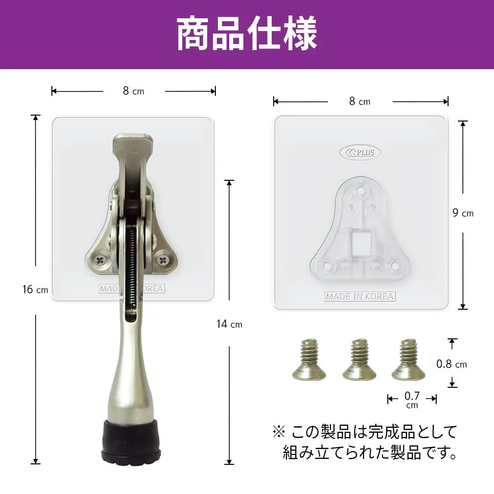 堅牢な構造と優れたサポート: プレートとドアストッパーを組み合わせた全体のサイズが H160mm x W80mm x D60mmで、強固なサポートを提供します。プレート自体のサイズは80mm x 90mmとなっており、しっかりとした取り付けを実現します。
