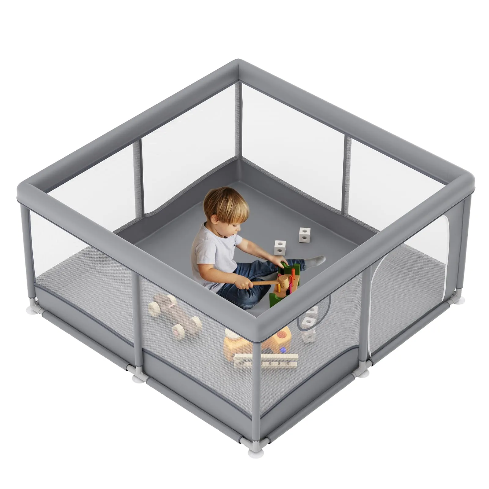 新品 SFUN ベビーサークル ソフトベビーサークル メッシュ 四角 扉付き 赤ちゃん ソフト サークル 滑り止め (120*120(cm))