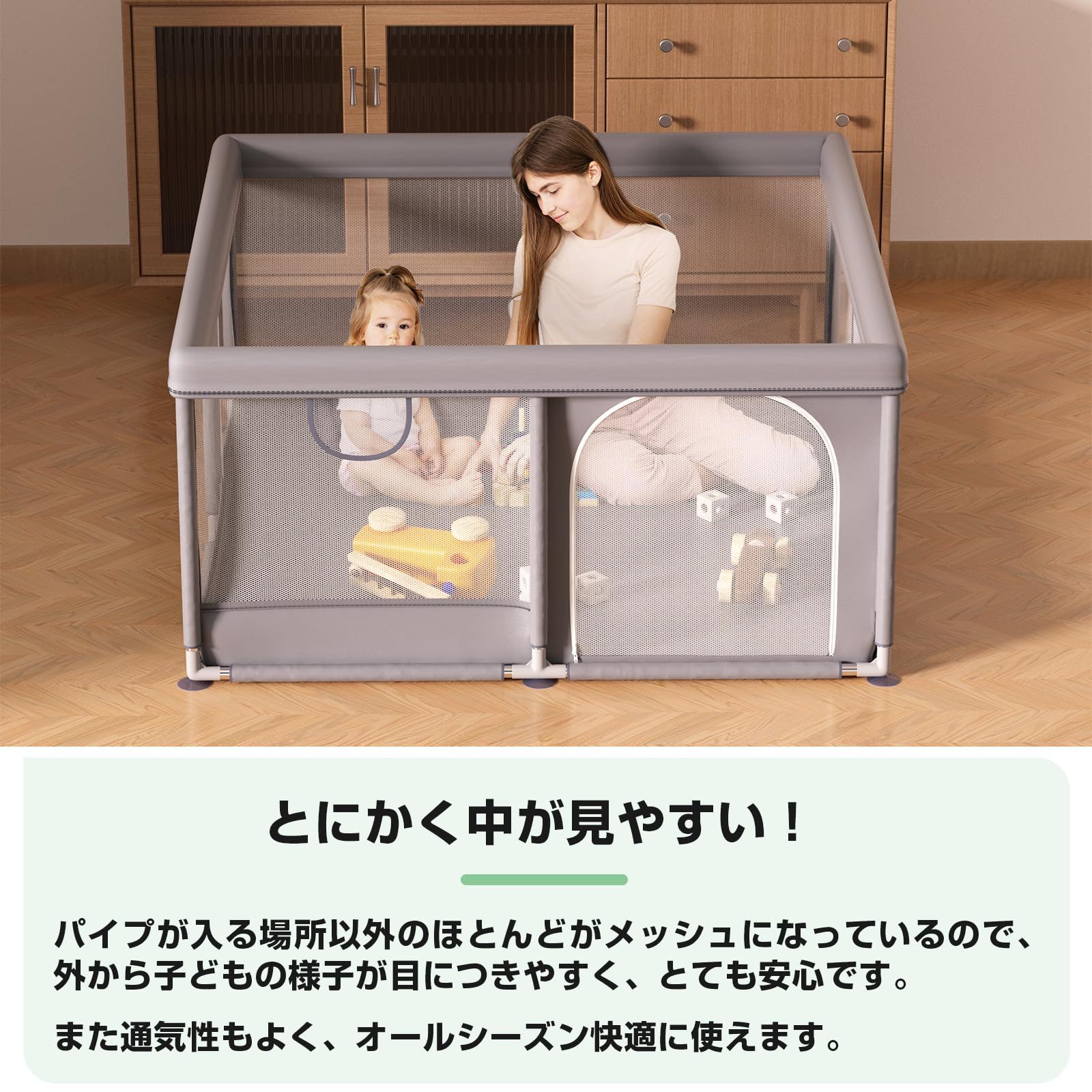 SFUN ベビーサークル ソフトベビーサークル メッシュ 四角 扉付き 赤ちゃん ソフト サークル 滑り止め (120*120(cm))