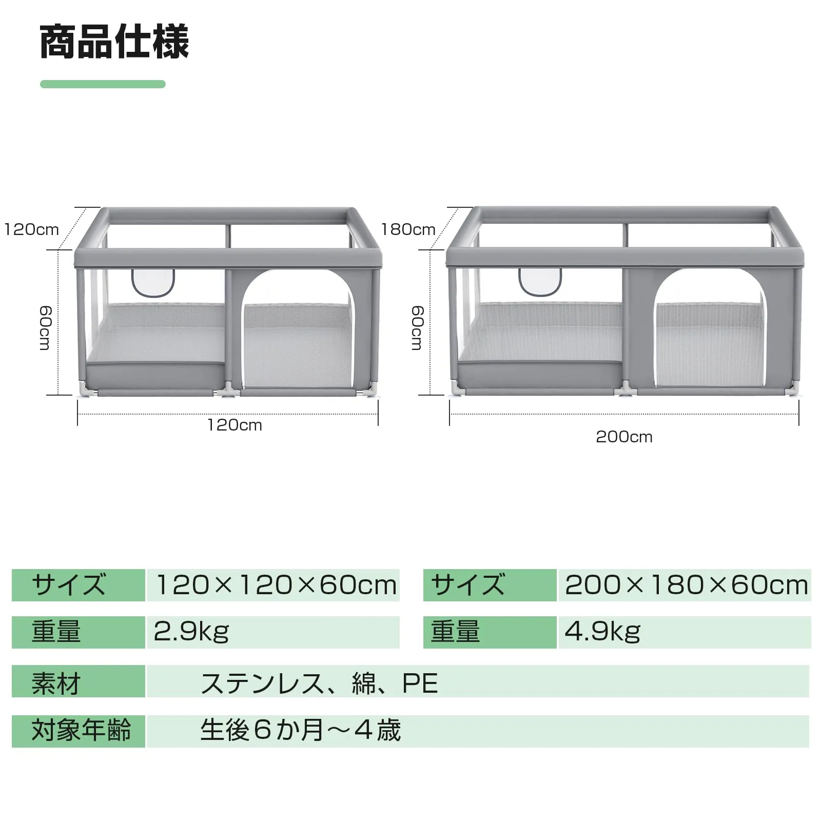 【ファスナー式の扉】外側からのみ開けられる仕様になっているので赤ちゃんが勝手に開けてしまう心配もありません。 開けたままなら赤ちゃんが自分で出入りできます。 04歳ぐらいのお子様が遊べる♪ サークルの高さは60cm。子供が乗り越える心配がありません。 配送について、商品のサイズや配送先都道府県によって最適な配送業者を選択しております。 業者・配送方法の指定は承れません。ご了承ください。 万が一の不着、紛失、誤配送の場合など、最後まで責任もって対応致しますのでご安心下さい。 宜しくお願い致します。