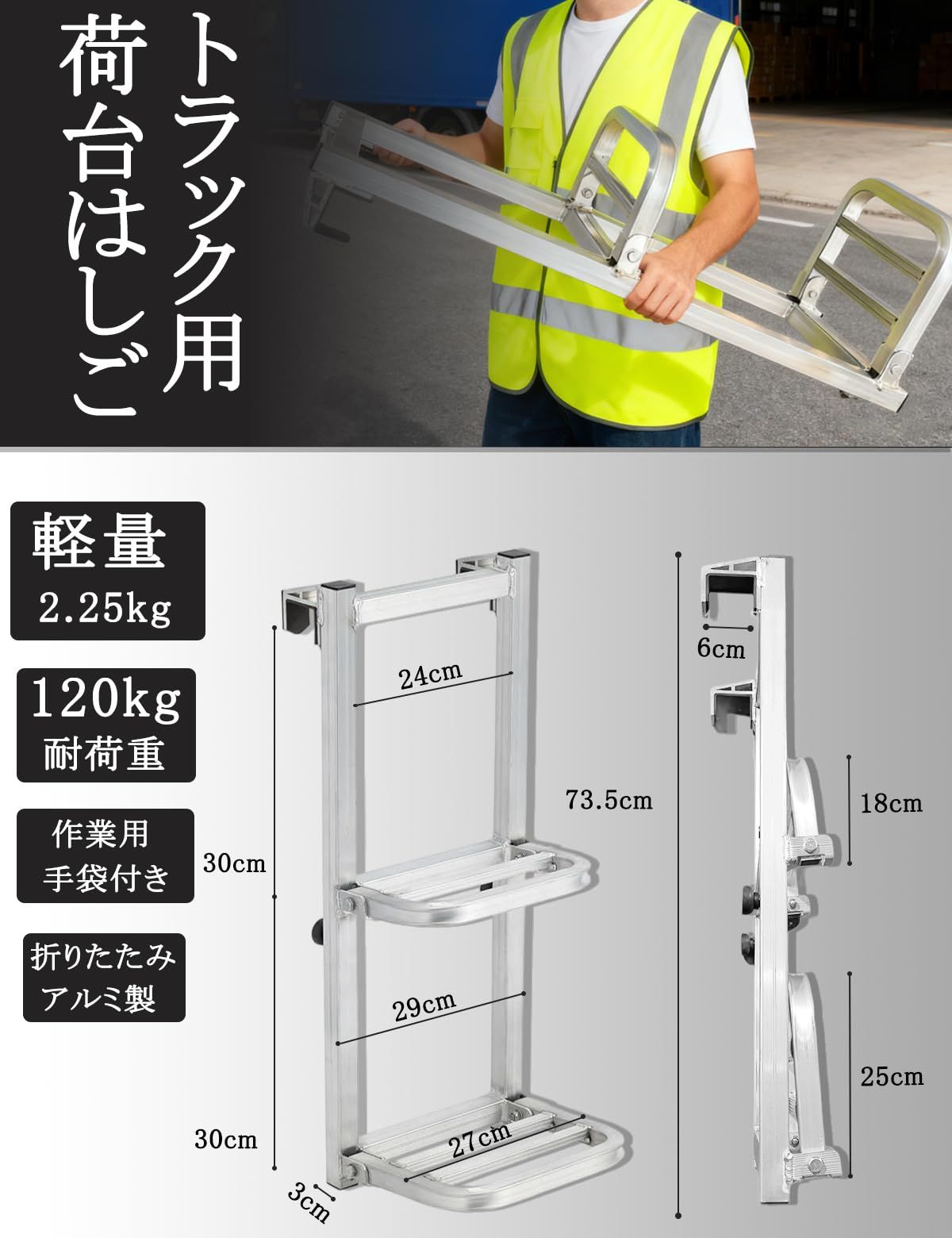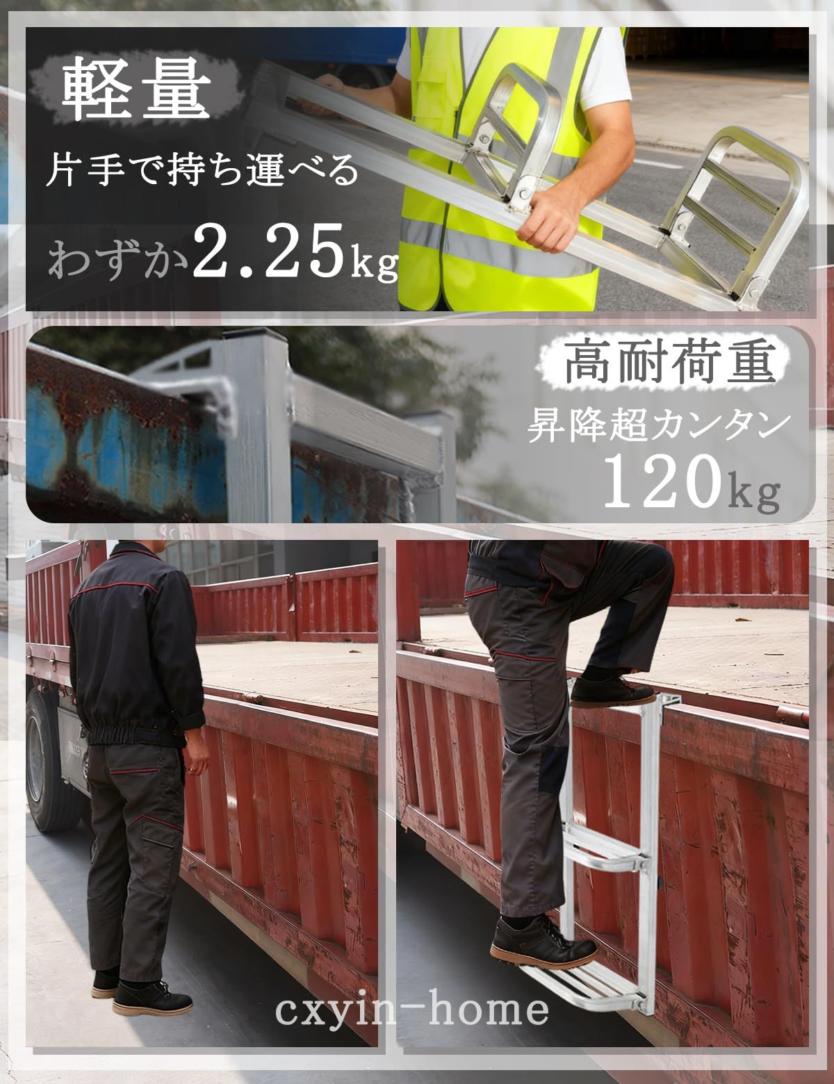 新品 トラック用荷台はしご 折りたたみ式 トラックラダー はしご ステップ 昇降ステップ 耐荷重120kg アルミ製 2段 省スペース 持ち運び簡単 軽量2.35kg 昇降しやすい 様々な車種に対応