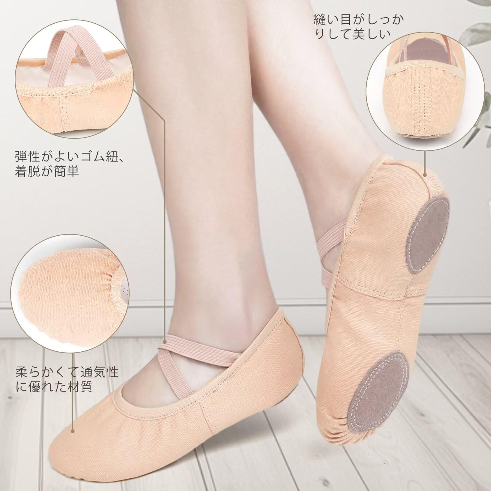 新品 [Linodes] 布製バレエシューズ キャンバス製 バレエシューズ バレエダンスシューズ バレエ靴 耐用 柔らかい 通気 14.5cm-25.5cm 子供 大人 キッズ レディース 初心者 練習用