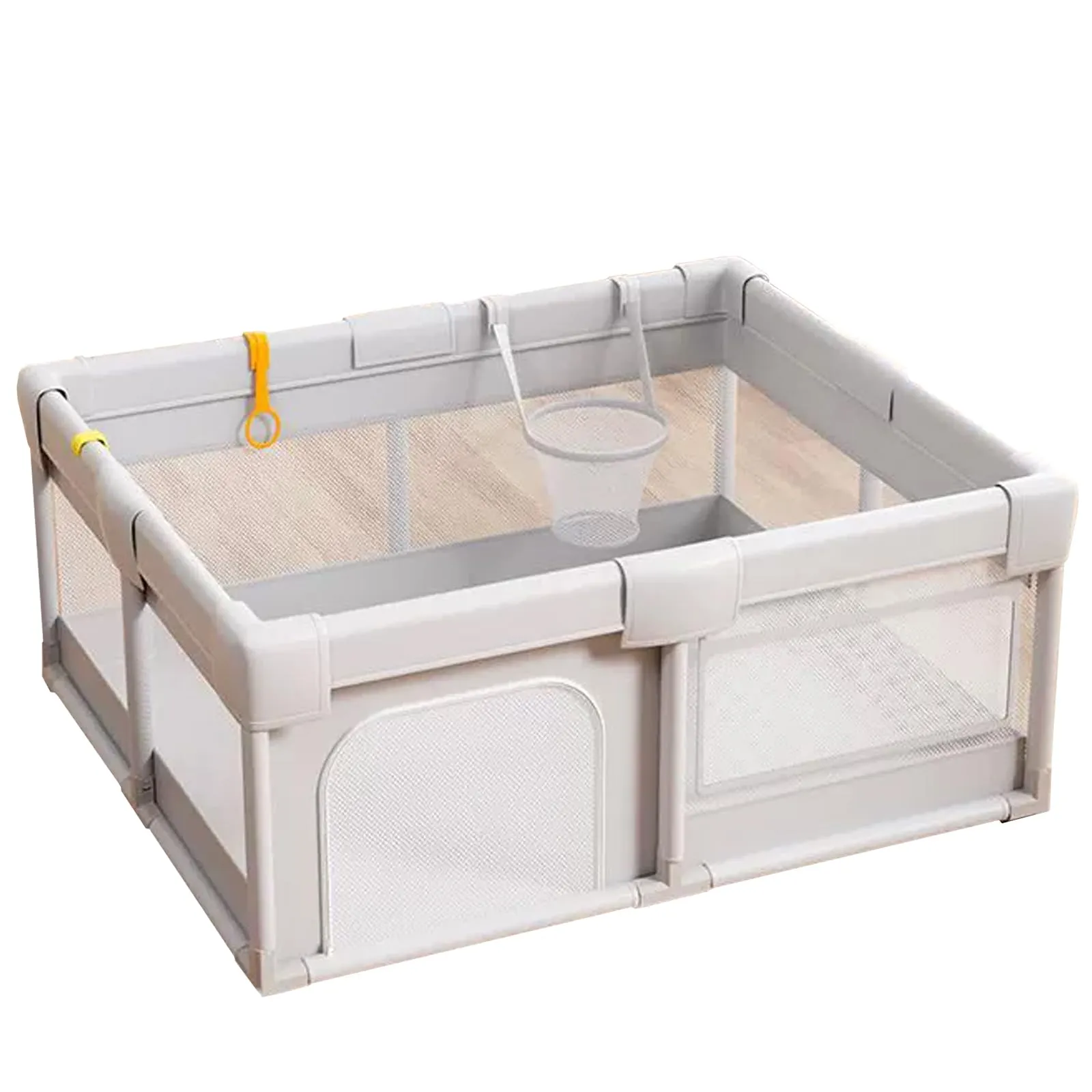 Yangweng ベビーサークル ベビーフェンス 滑り止め吸盤付き バスケット付き ドアロック付き 大型 外側ロック 扉付き 吊り輪付き カバー付 室内外対応 ファスナー開閉扉 多機能 キッズランド ベビーゲート プレイヤード キッズパーテーション 子供ゲート 洗濯可能 ベビー 子供 出産祝い(グレー 160*180*65CM)